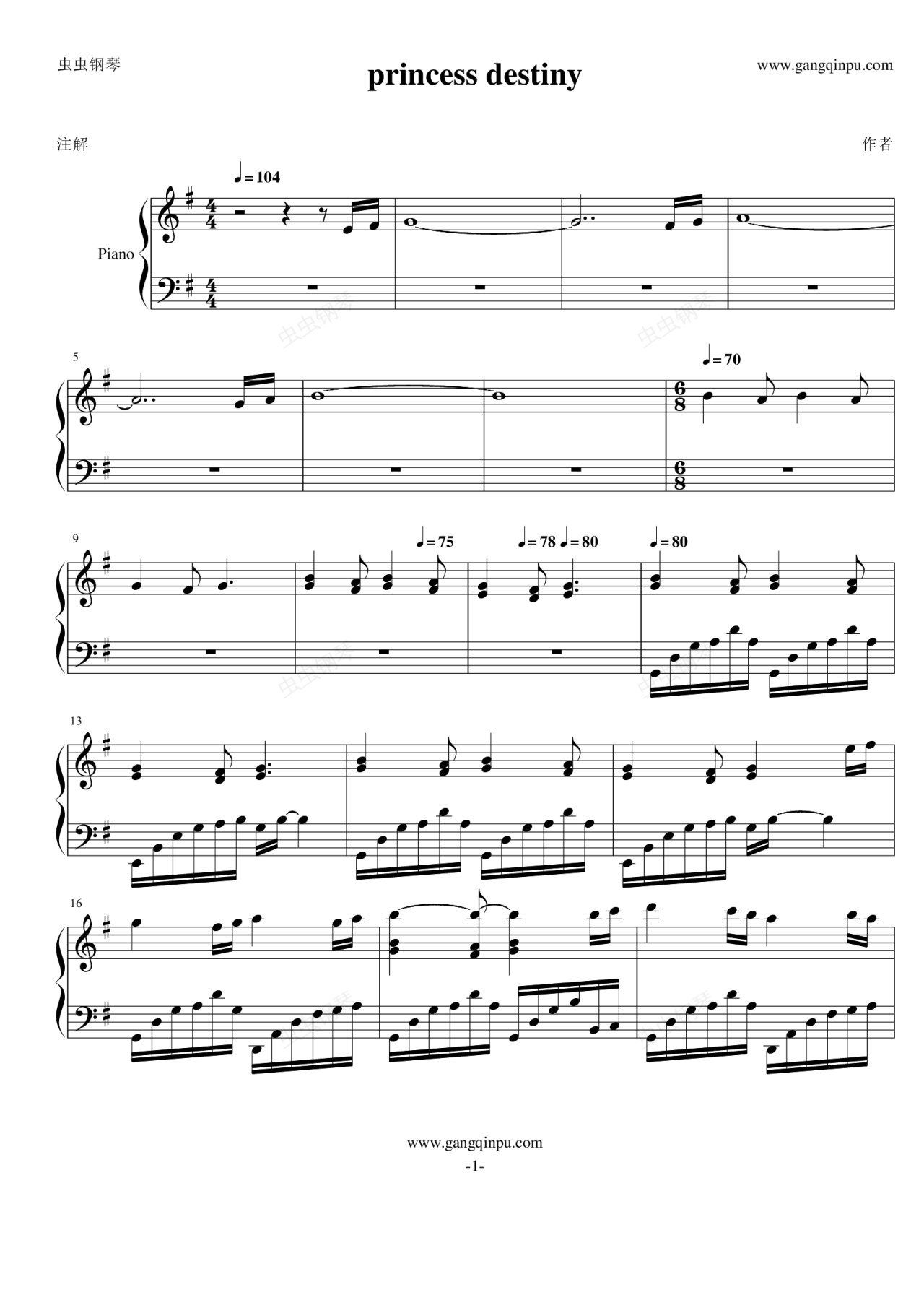 钢琴谱:princess destiny
