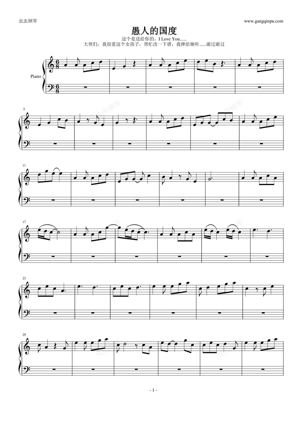 钢琴谱:愚人的国度
