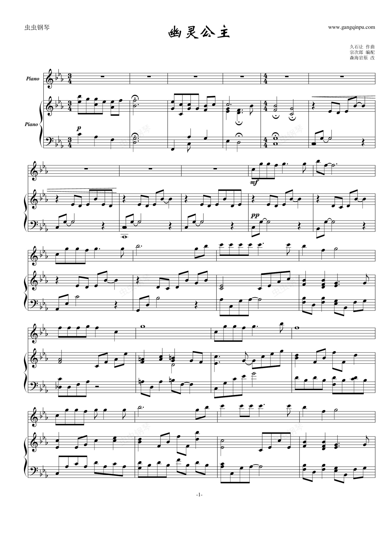 钢琴谱:幽灵公主主题曲(宗次郎编配版)改