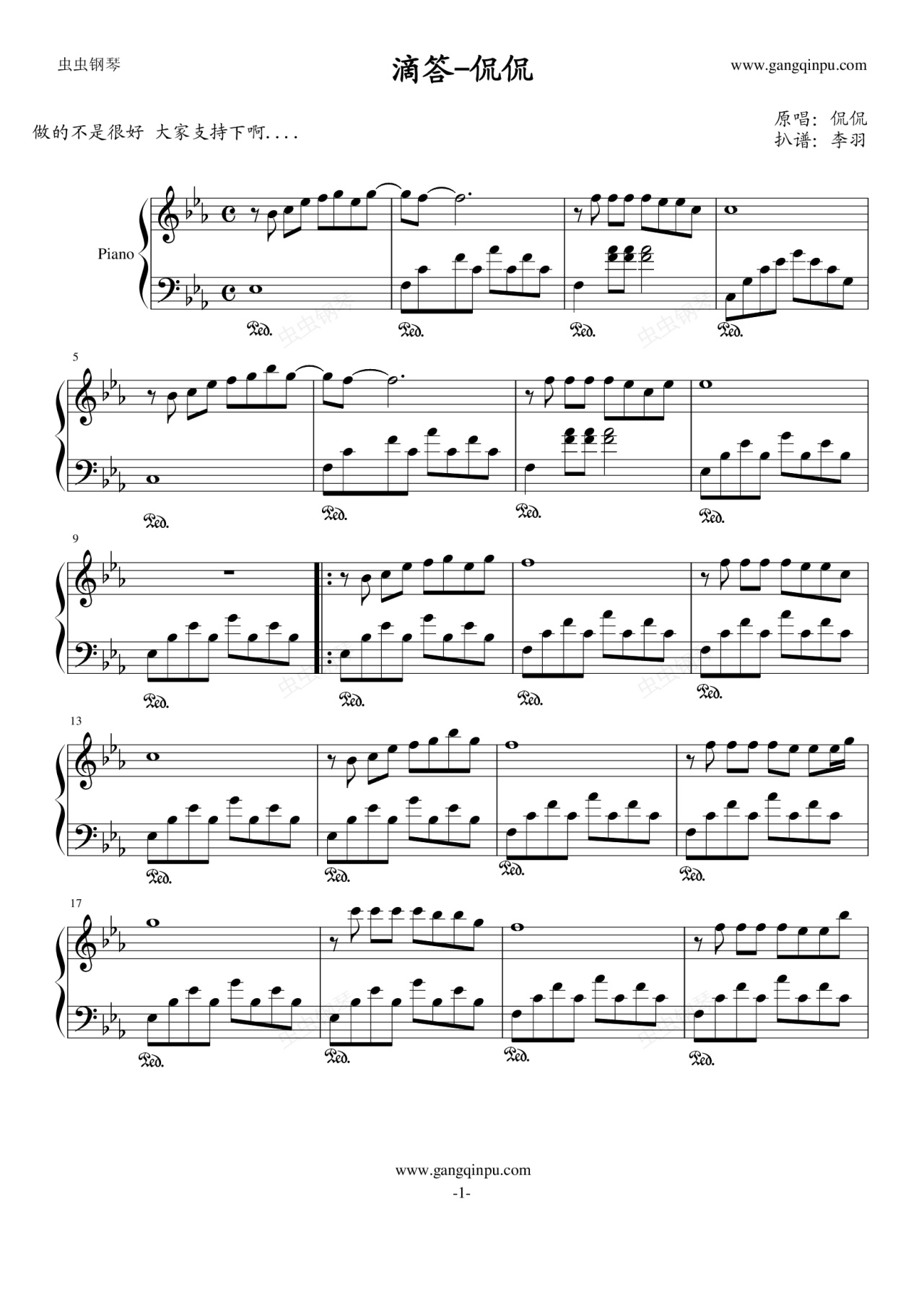 钢琴谱:滴答-侃侃