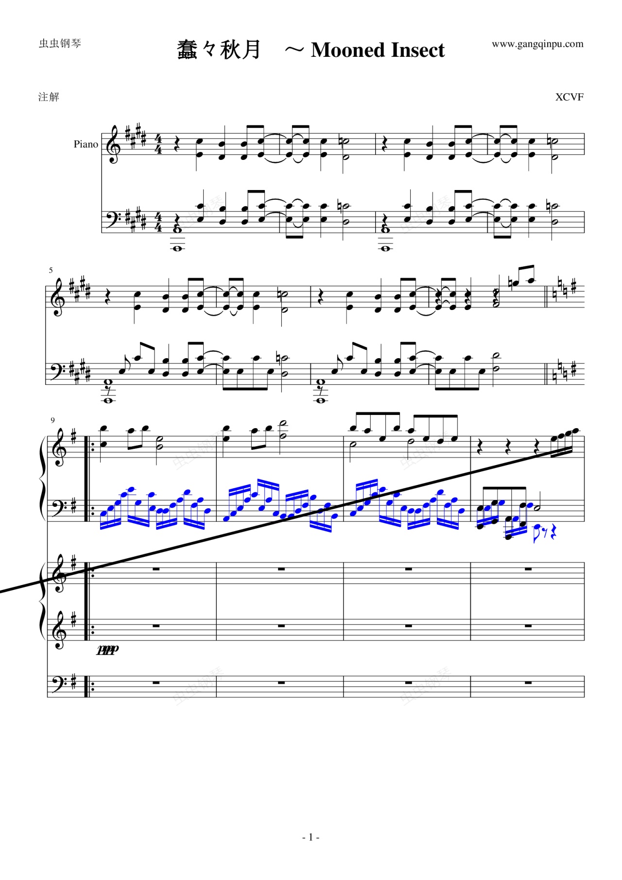 钢琴谱:【东方永夜抄】蠢动的秋月