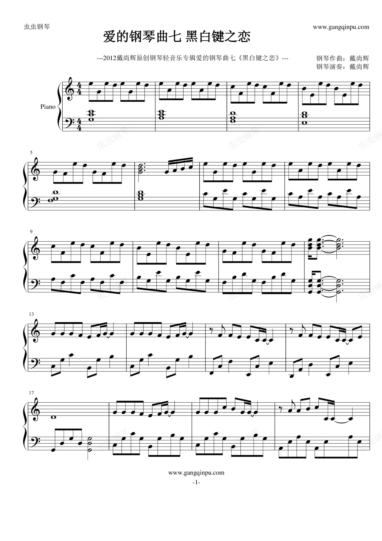 钢琴谱:爱的钢琴曲7 黑白键之恋