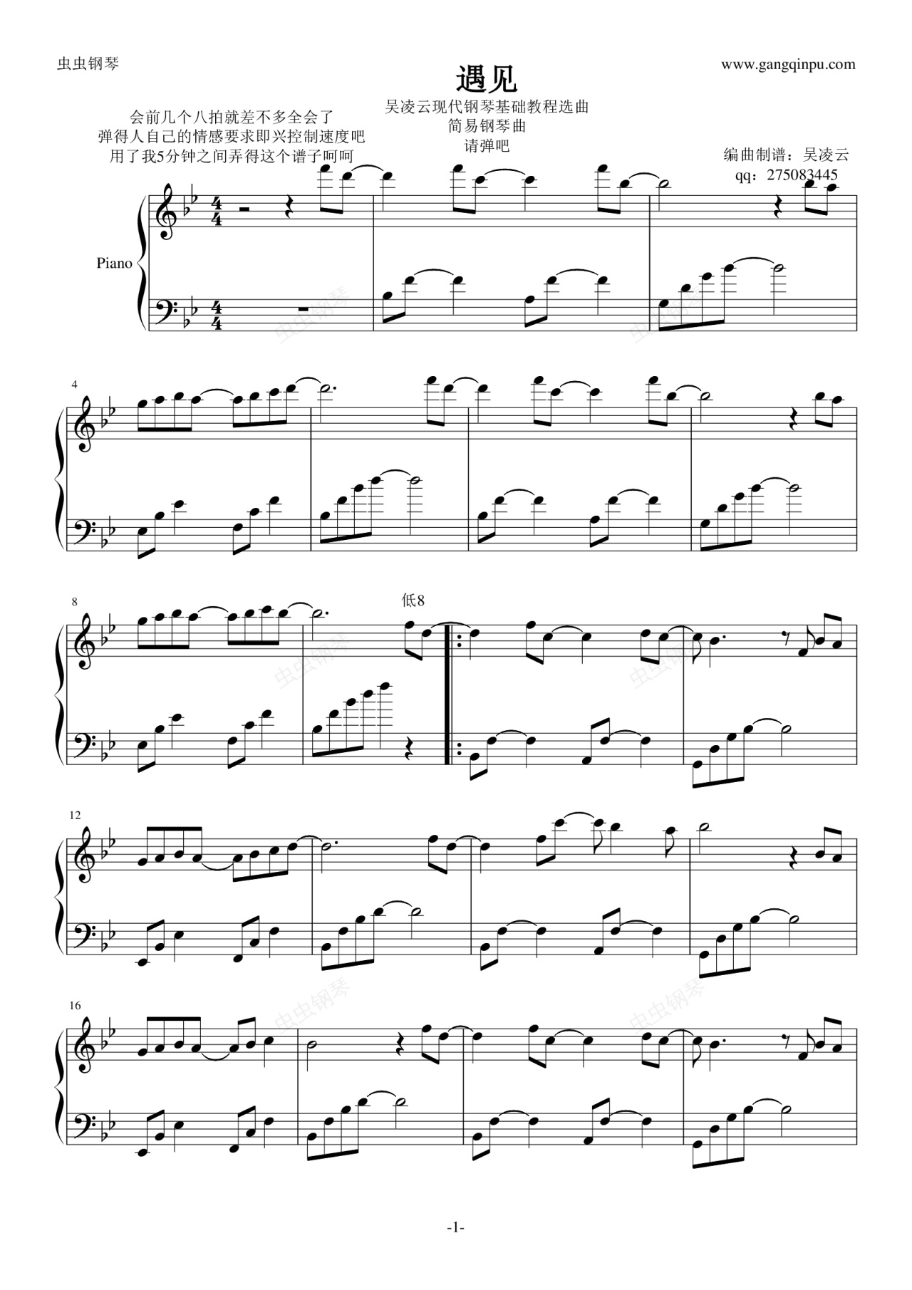 钢琴谱:遇见 简易钢琴曲 现代钢琴基础教程选曲