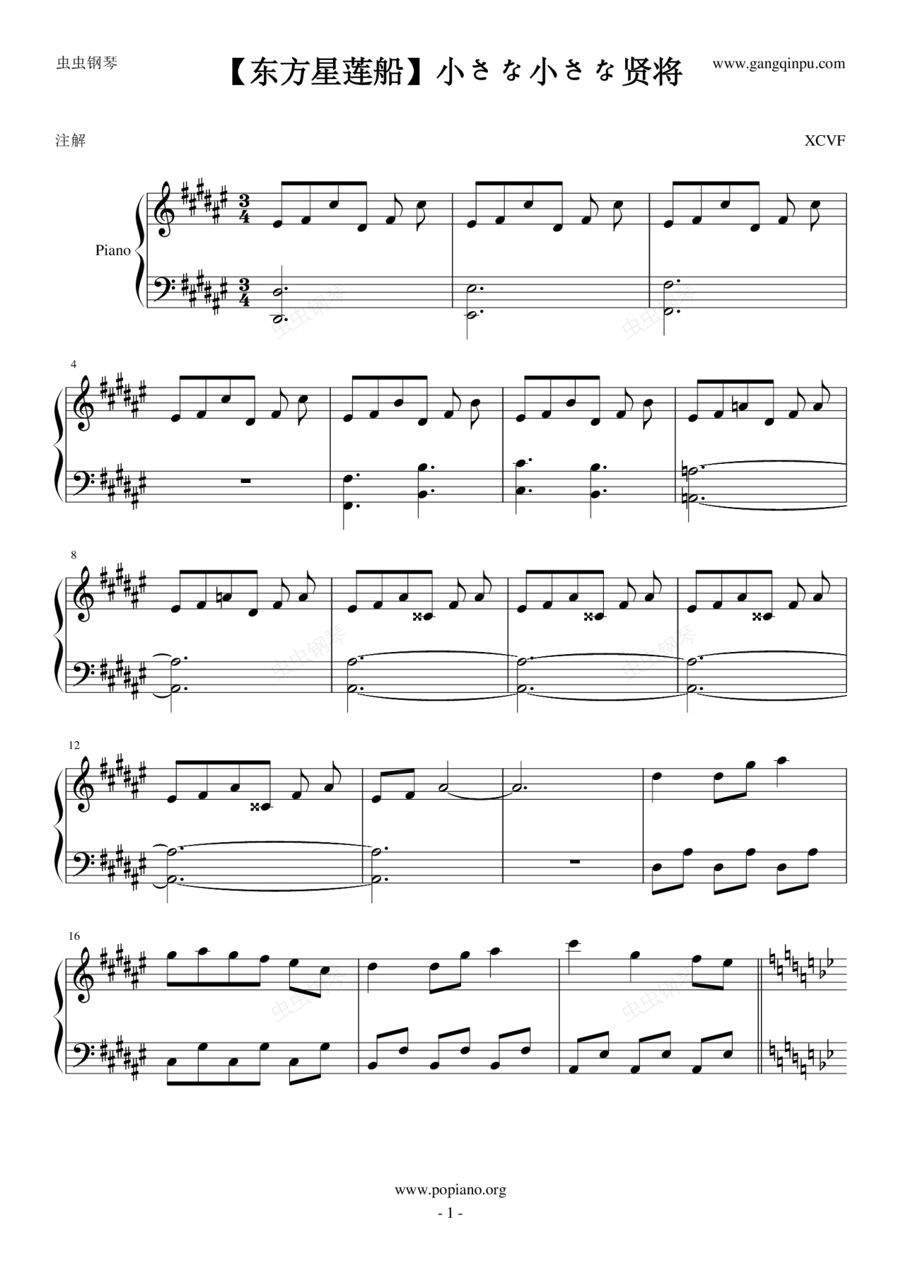 钢琴谱:【东方星莲船】小さな小さな贤将