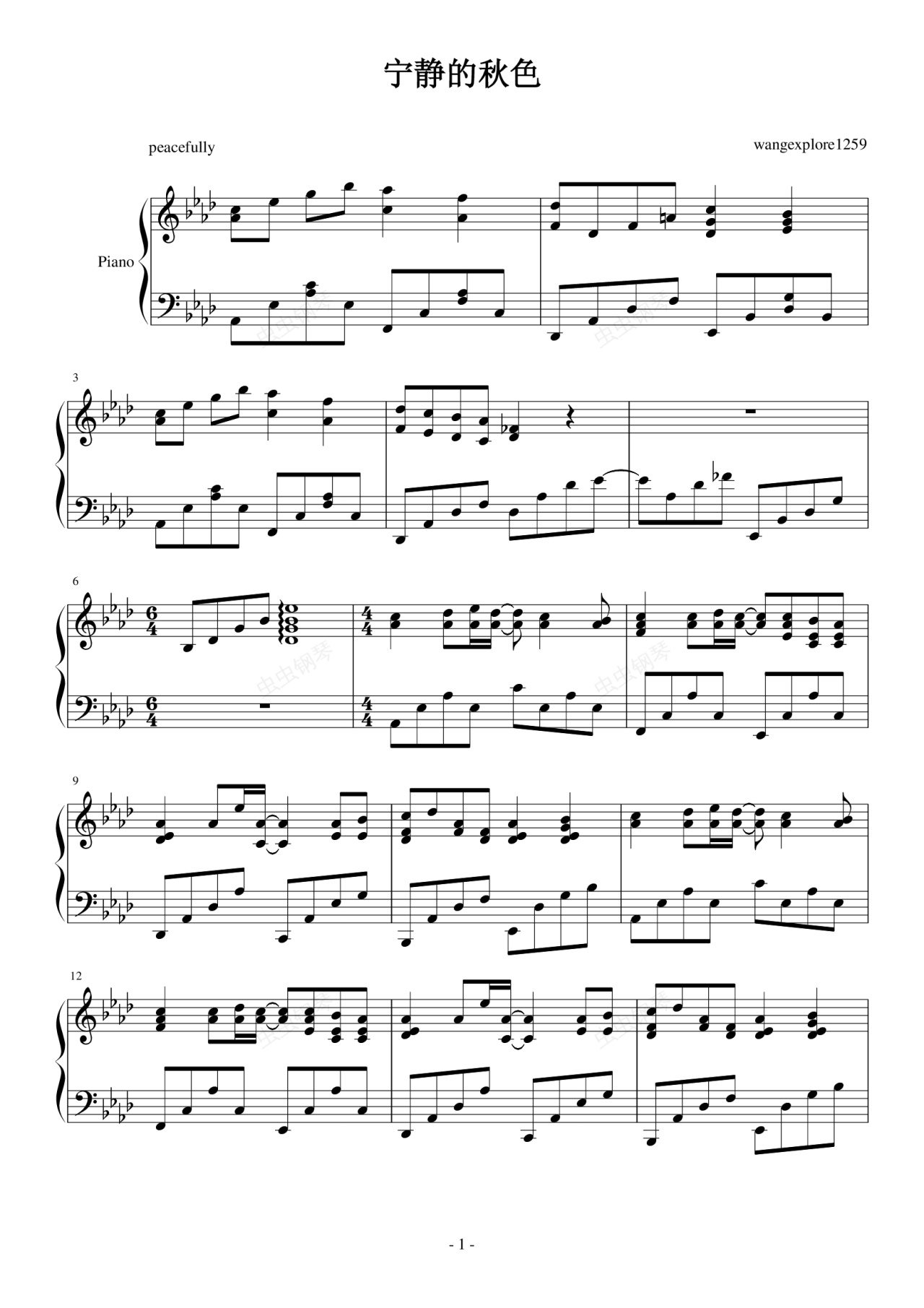 钢琴谱:宁静的秋色