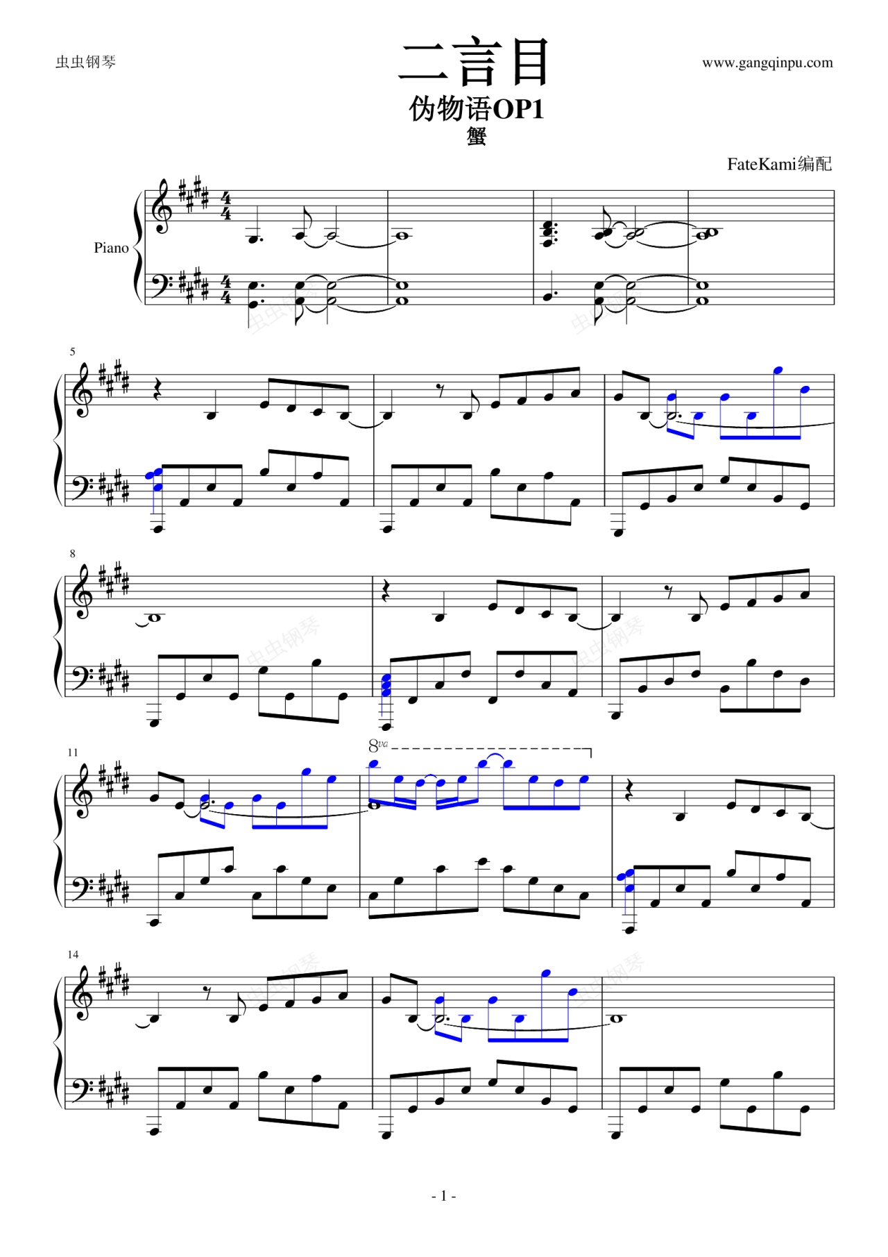 钢琴谱:二言目----伪物语