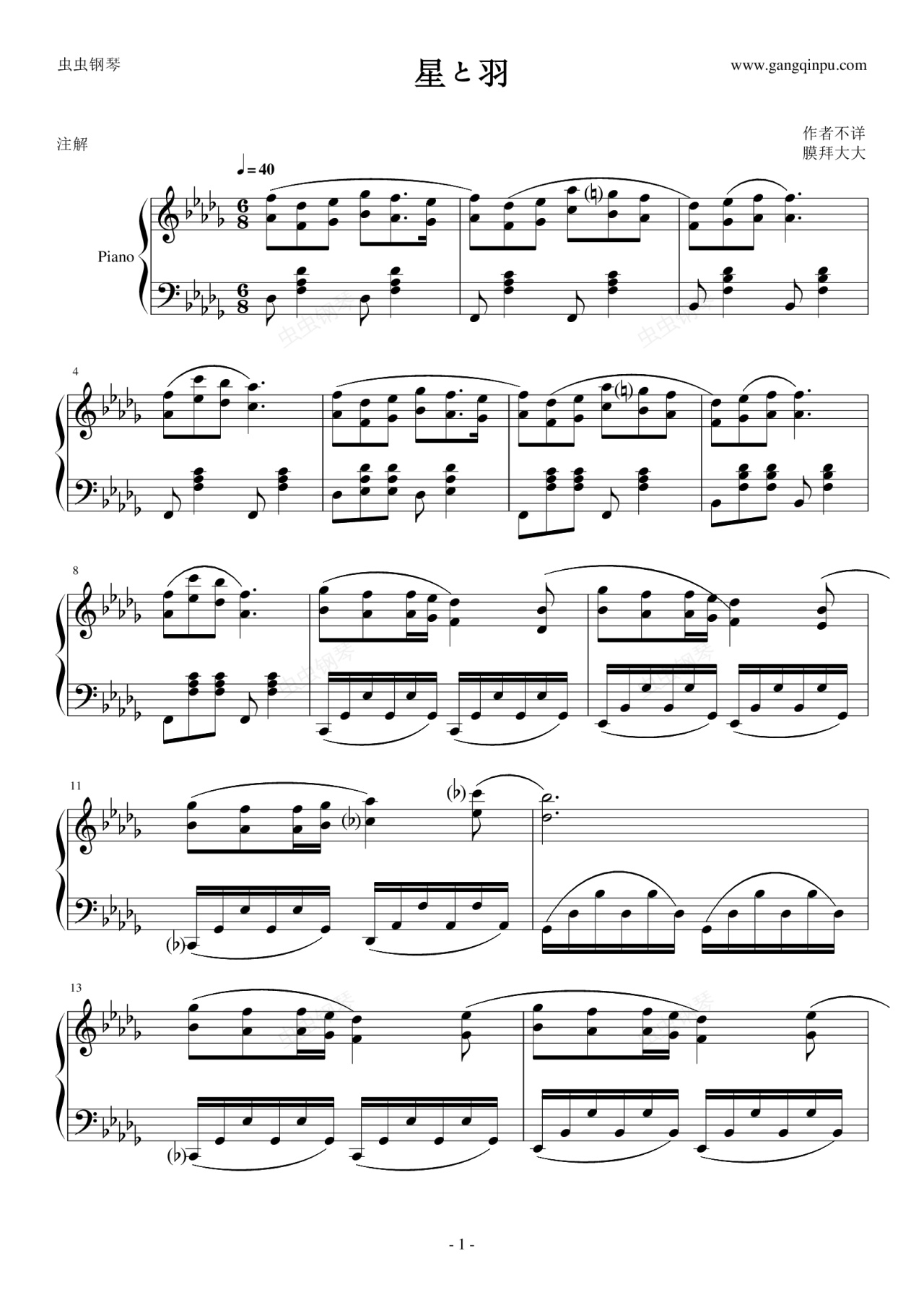 星と羽其中失真钢琴那段,在网上看到有神人写了谱子(膜拜写谱的大大),看到还没有ove格式的就编了一下,希望喜欢。