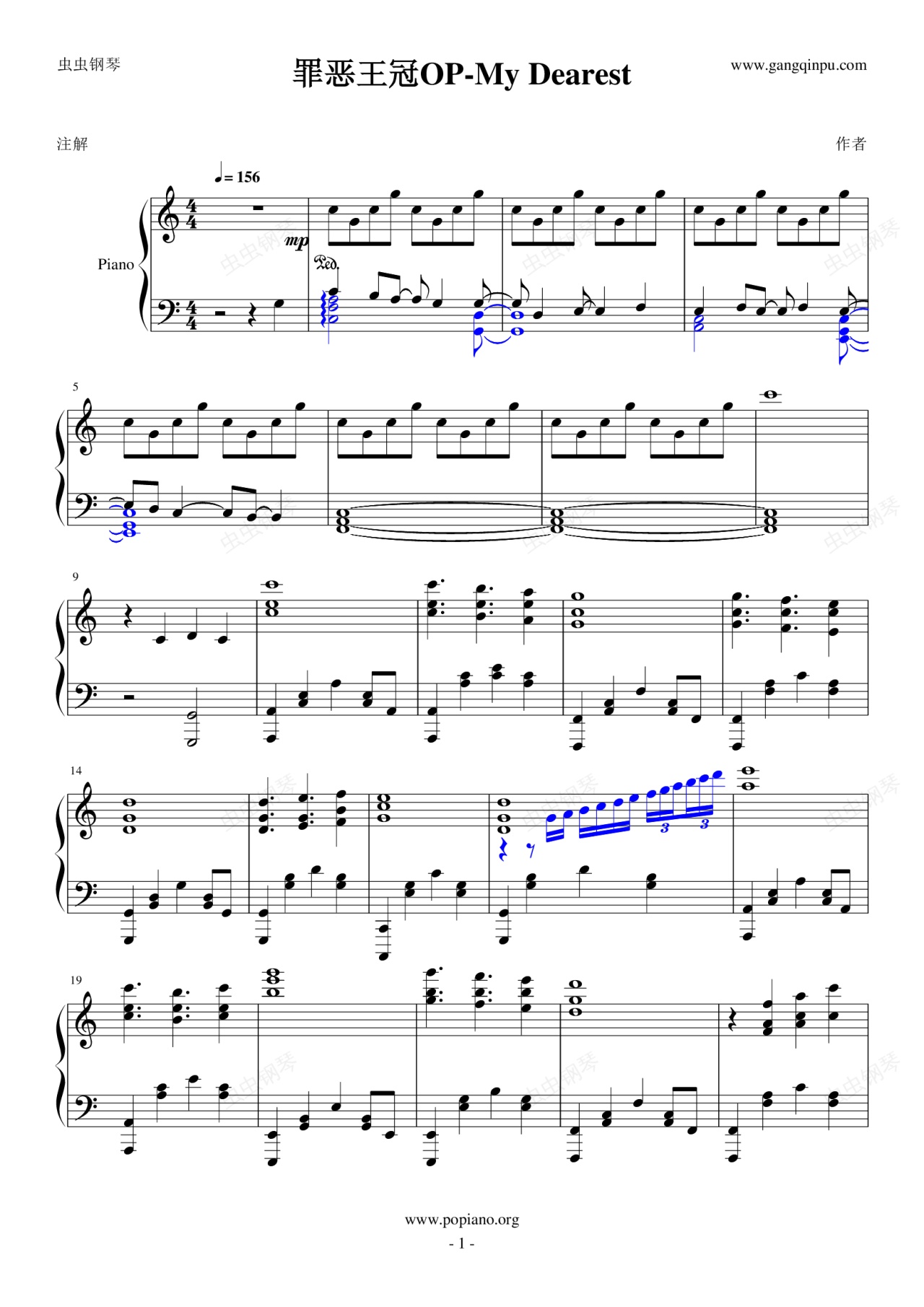 钢琴谱:罪恶王冠OP-My Dearest (简化版)-guilty-crown-my-dearest
