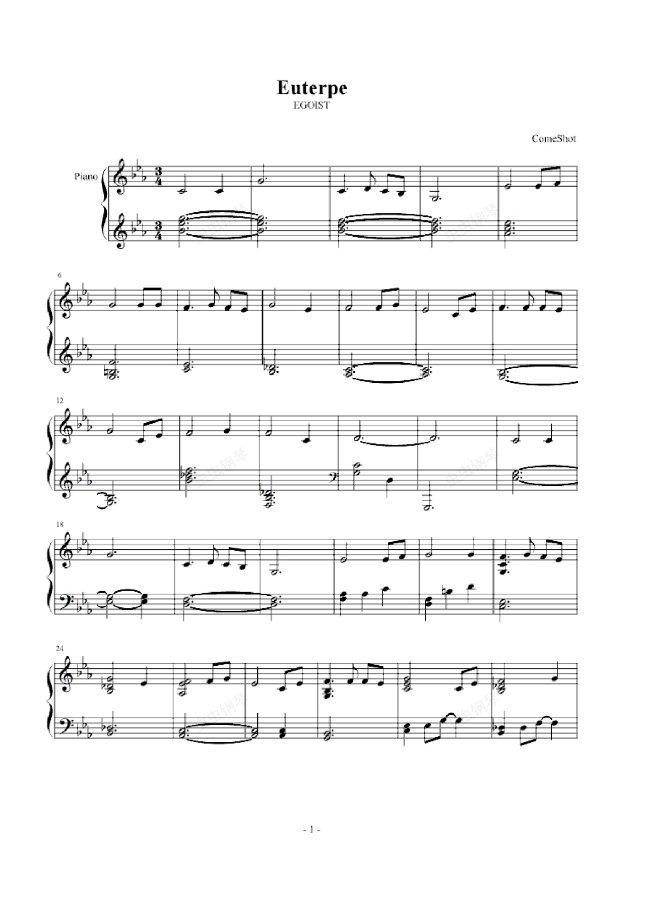 钢琴谱:euterpe 罪之王冠 op1