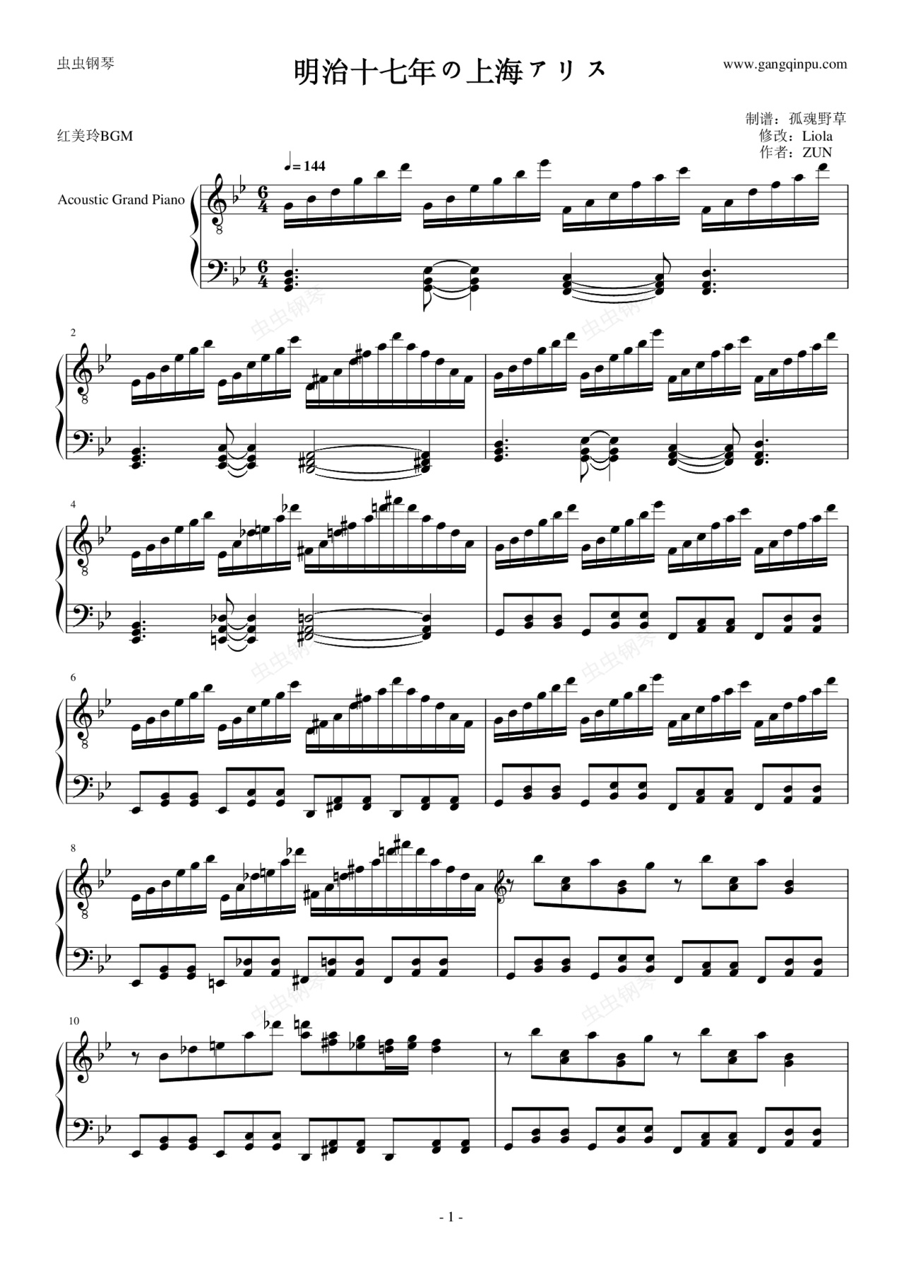 钢琴谱:【东方红魔乡】明治十七年の上海アリス