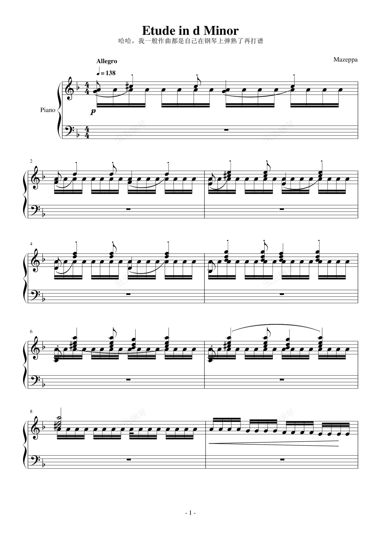 钢琴谱:Etude in d Minor