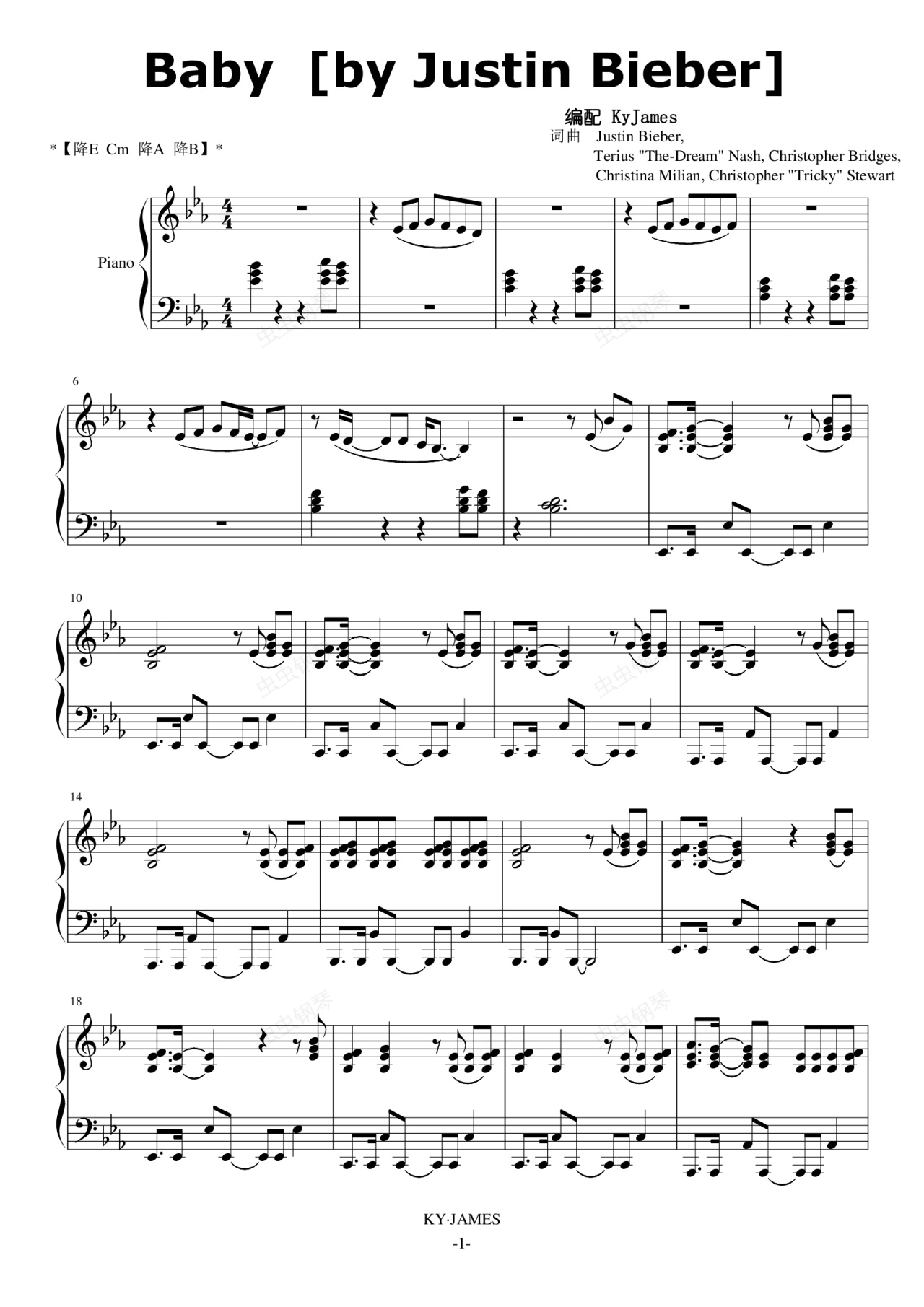 钢琴谱:BABY (贾斯丁·比伯)