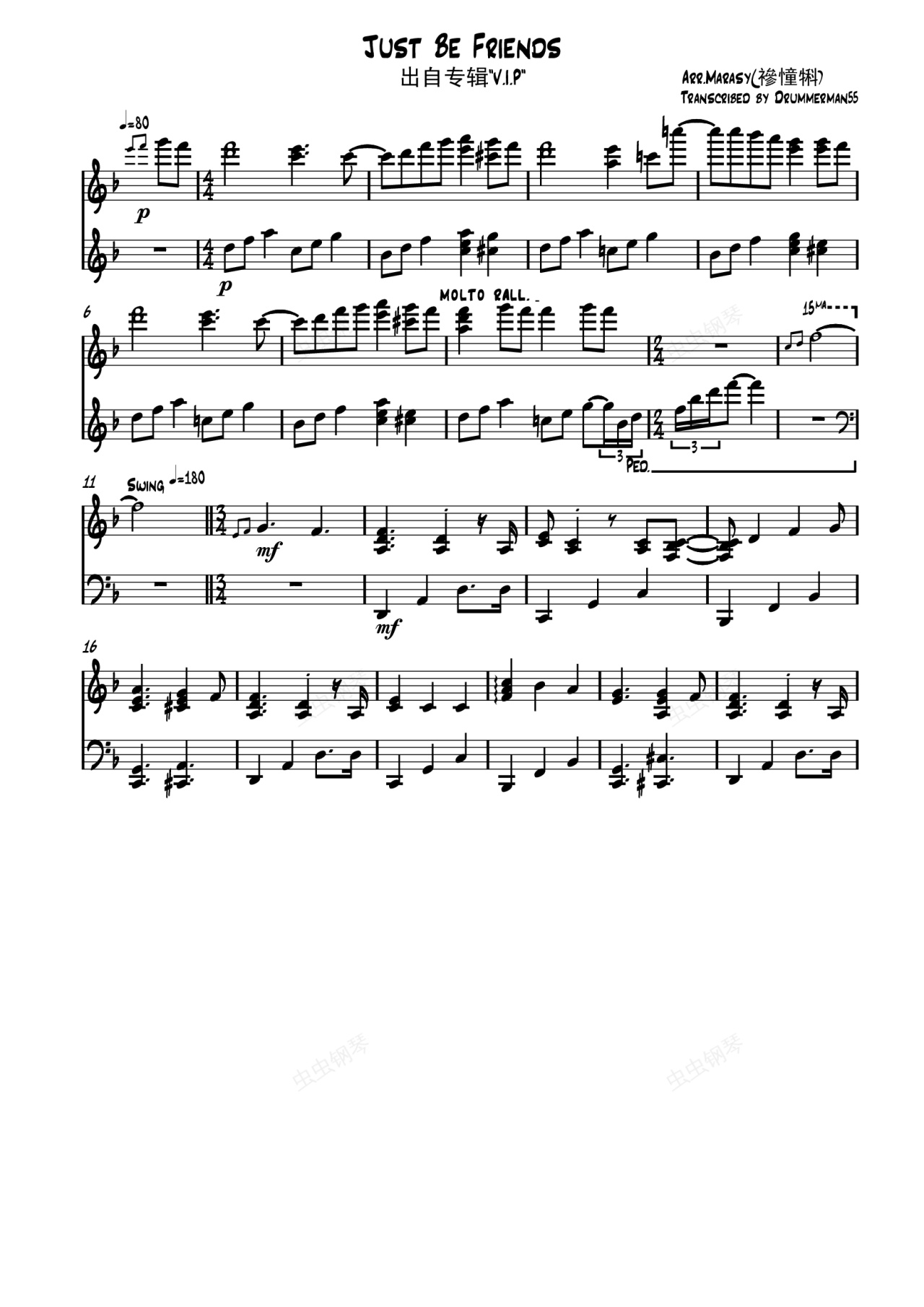 钢琴谱:Just Be Friends(触手猴版)