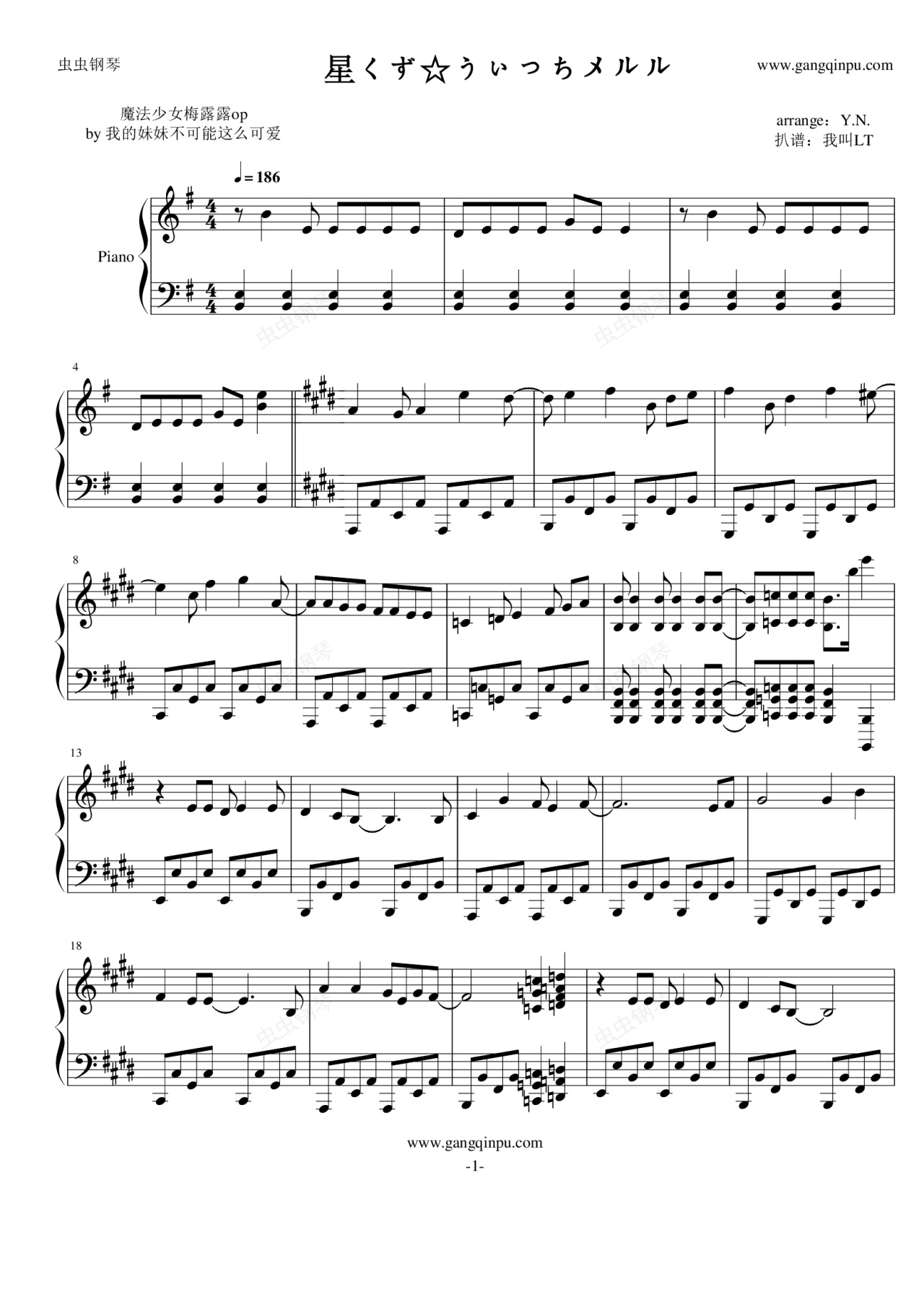 钢琴谱:梅露露op 星くず☆うぃっちメルル