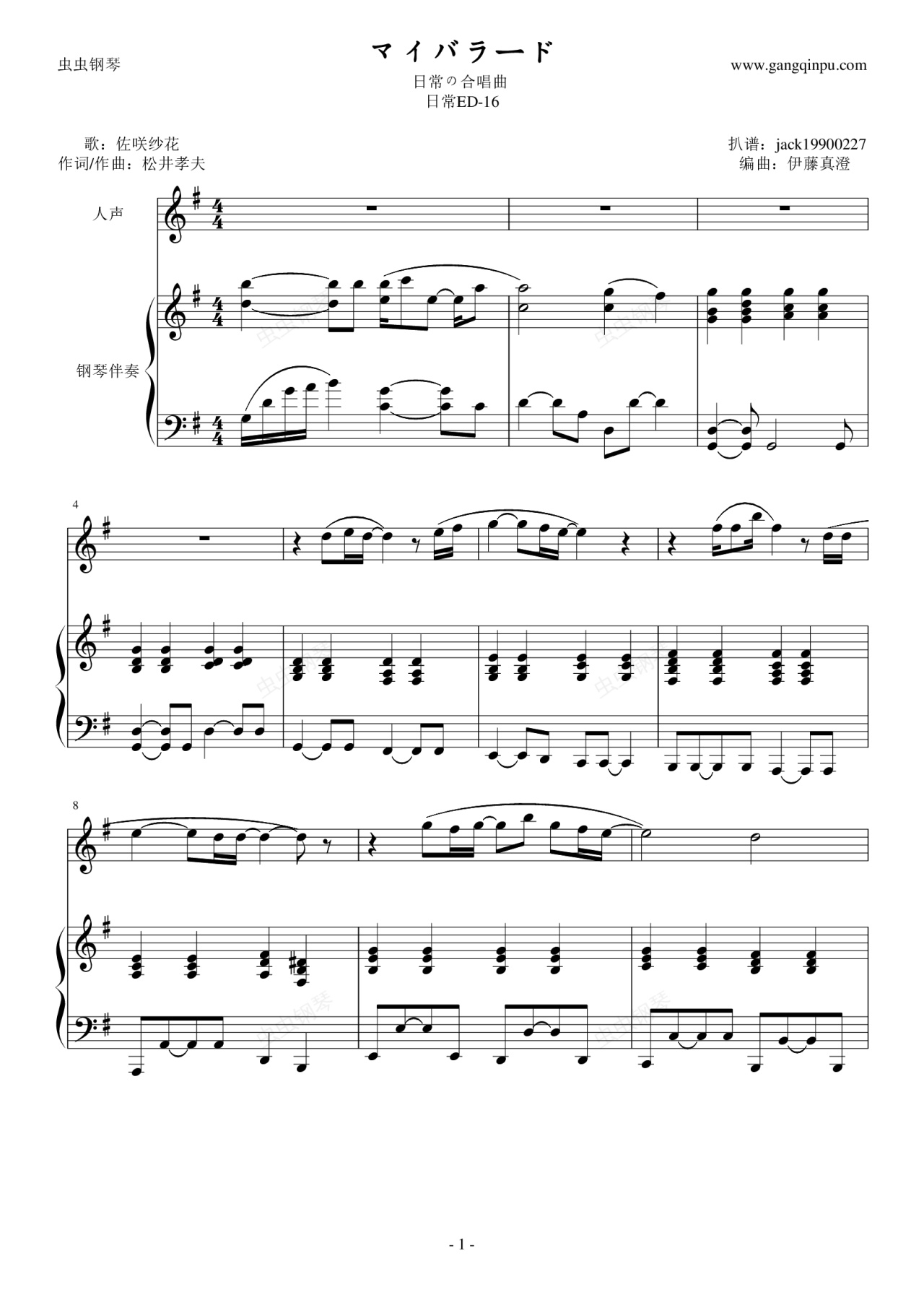 钢琴谱:【日常ED-16】マイバラード钢琴伴奏谱