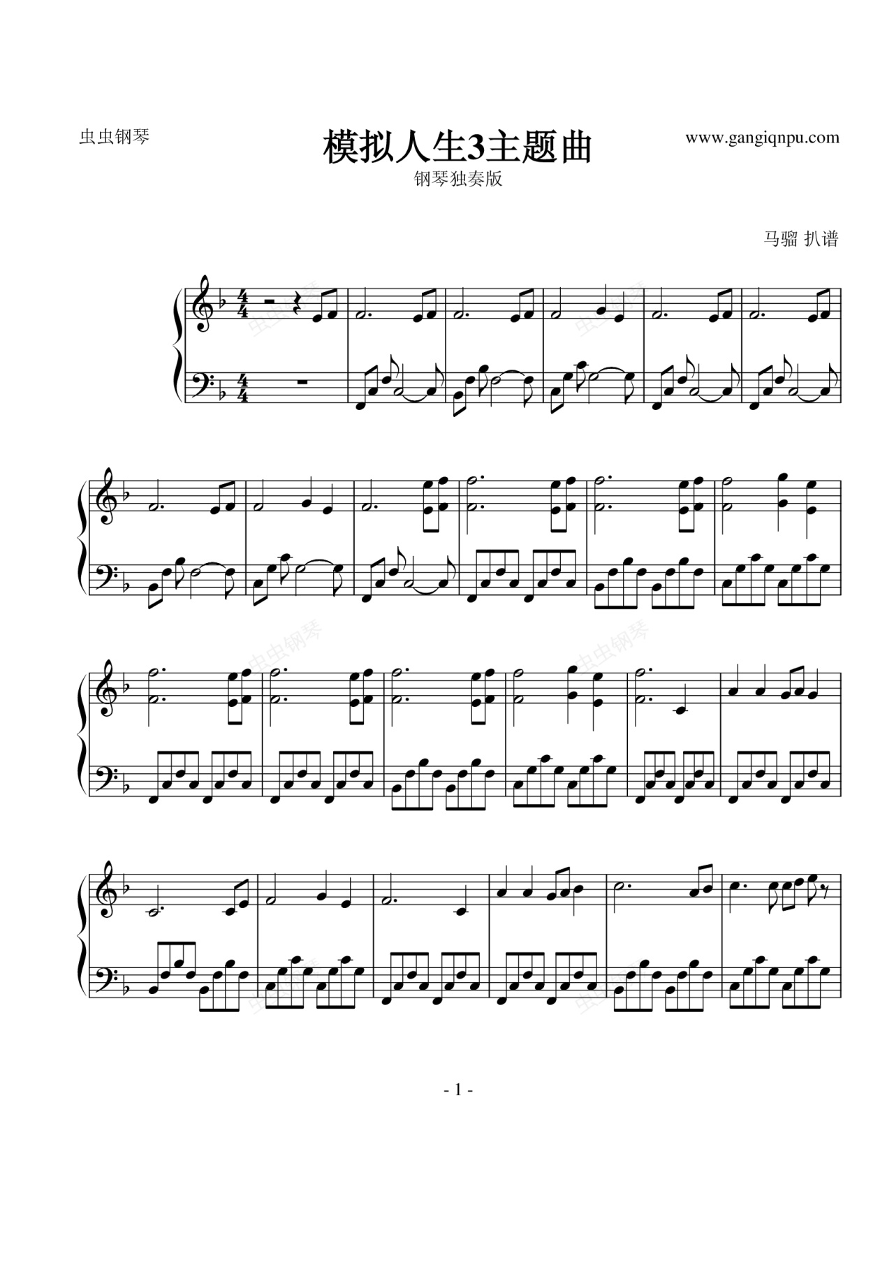 钢琴谱:【口袋妖怪】红黄蓝绿 - 第1个城市 - 常馨市