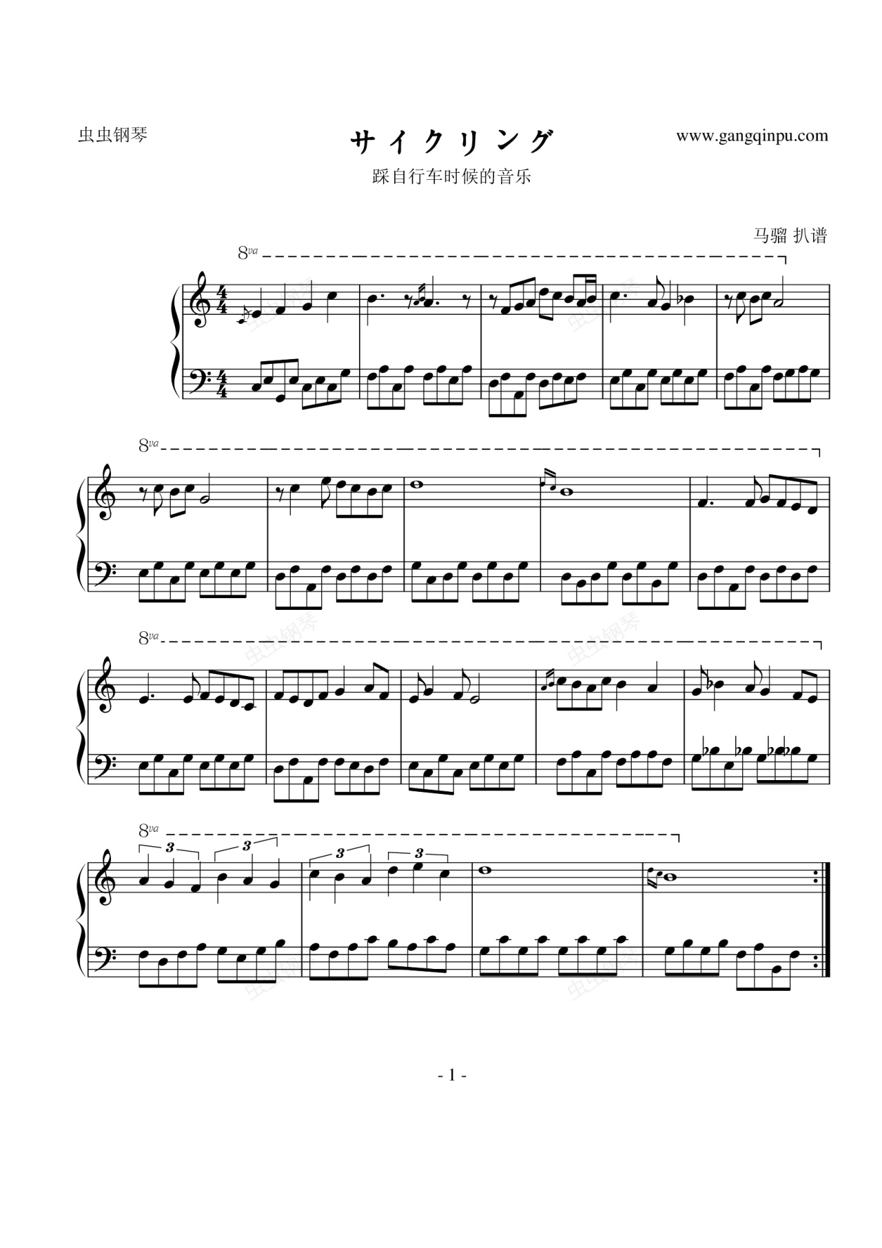钢琴谱:【口袋妖怪】红黄蓝绿 - 自行车 - 单车
