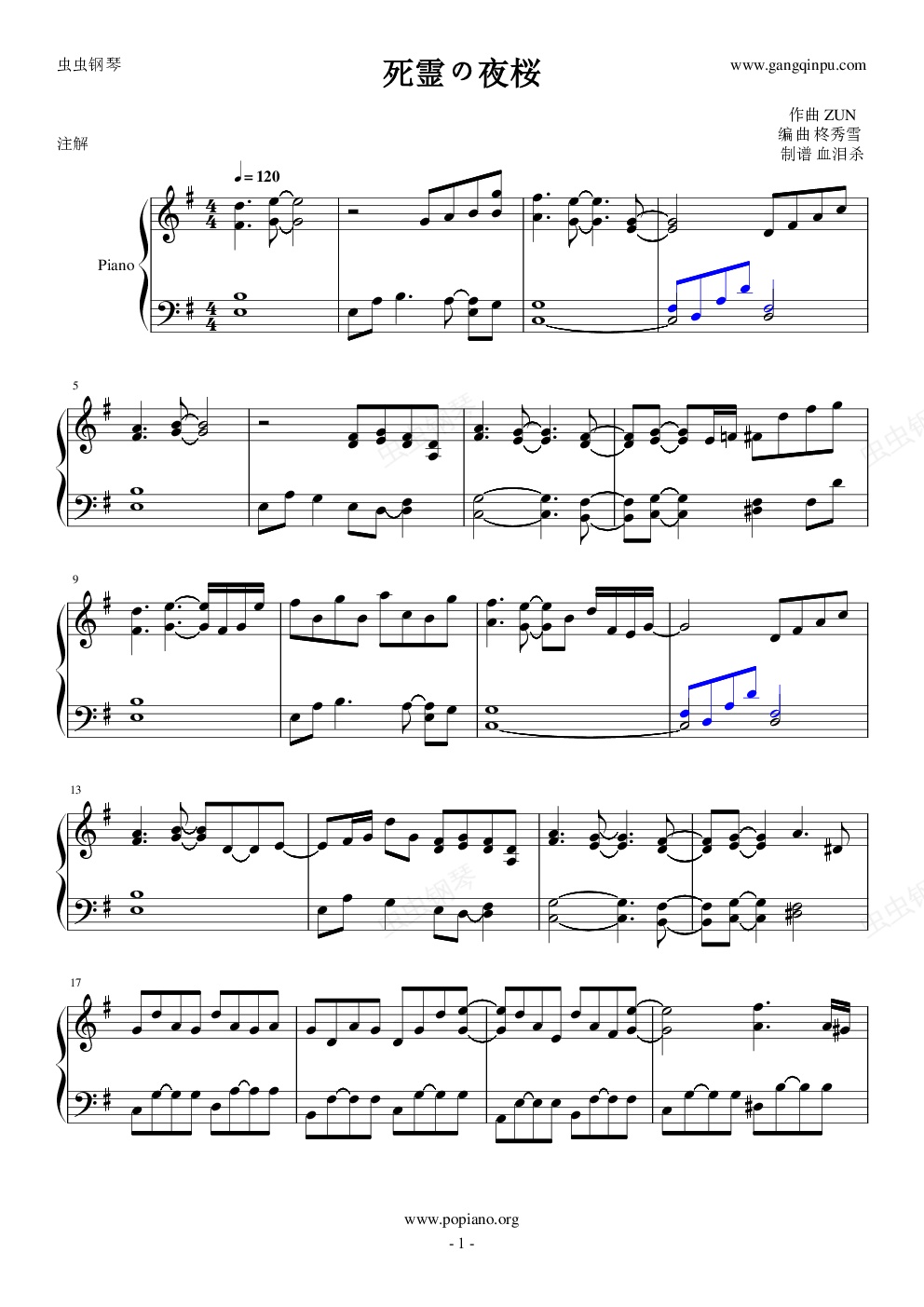 钢琴谱:【东方】死霊の夜桜-東方神霊廟