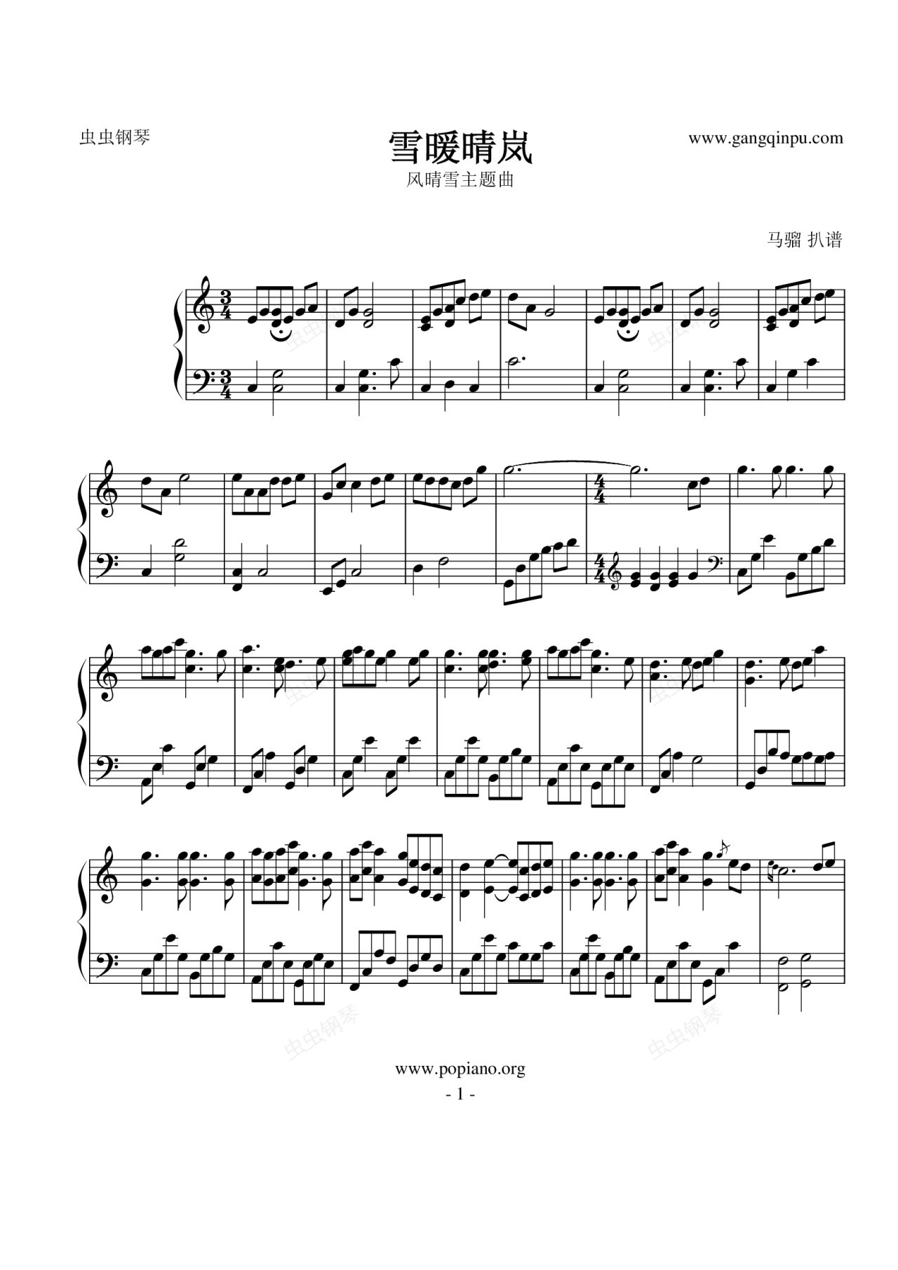 钢琴谱:【古剑奇谭】雪暖晴岚 - 风晴雪主题曲