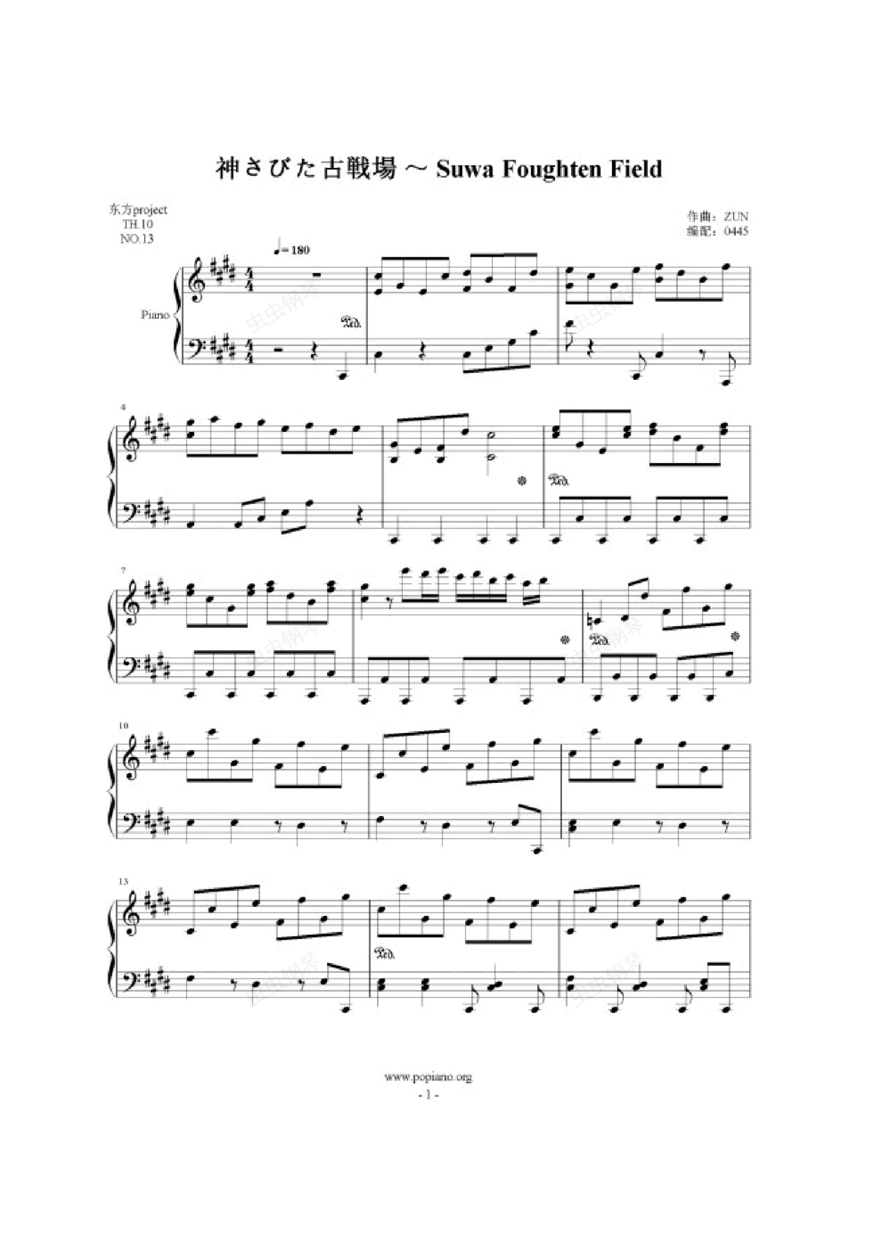 钢琴谱:【东方风神录】神さびた古戦場 ~ Suwa Foughten Field