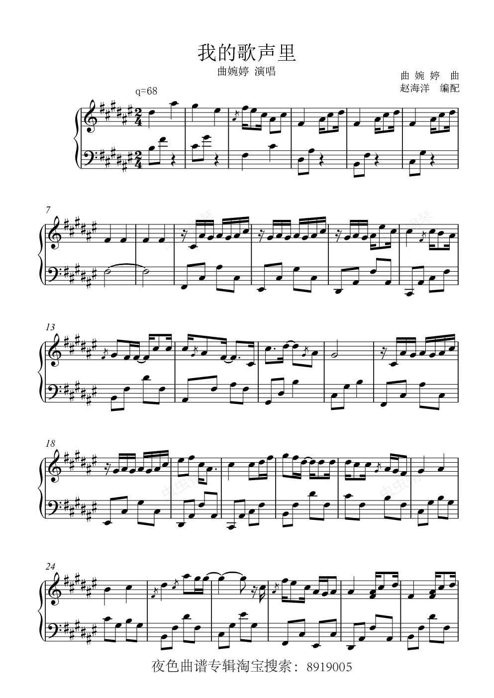 钢琴谱:《我的歌声里》曲婉婷 正版 钢琴谱