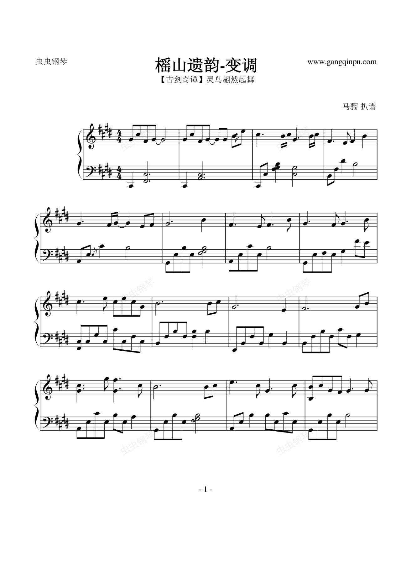 钢琴谱:【古剑奇谭】榣山遗韵(变调) - 欧阳少恭的古琴独奏