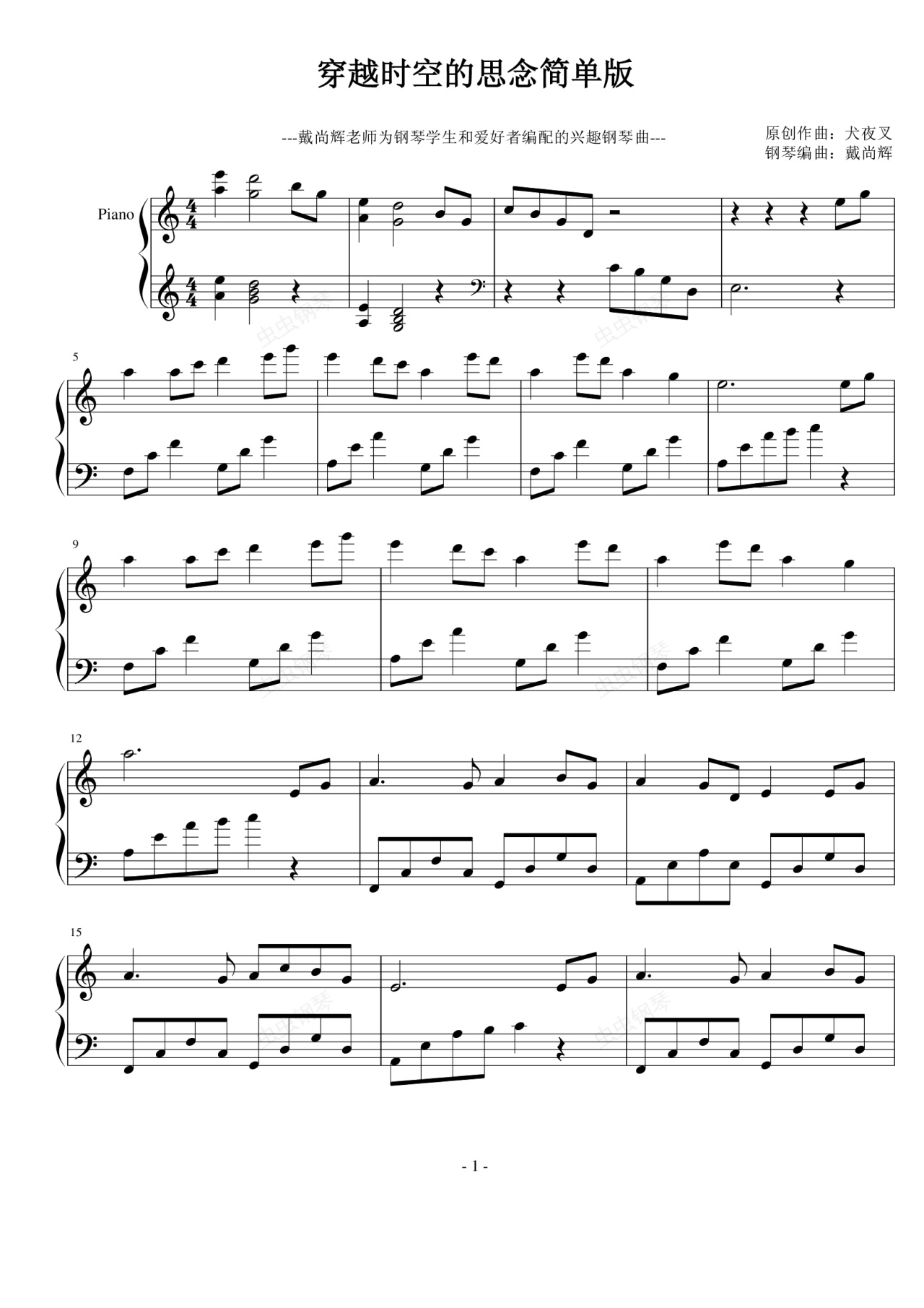 钢琴谱:穿越时空的爱念 最简版