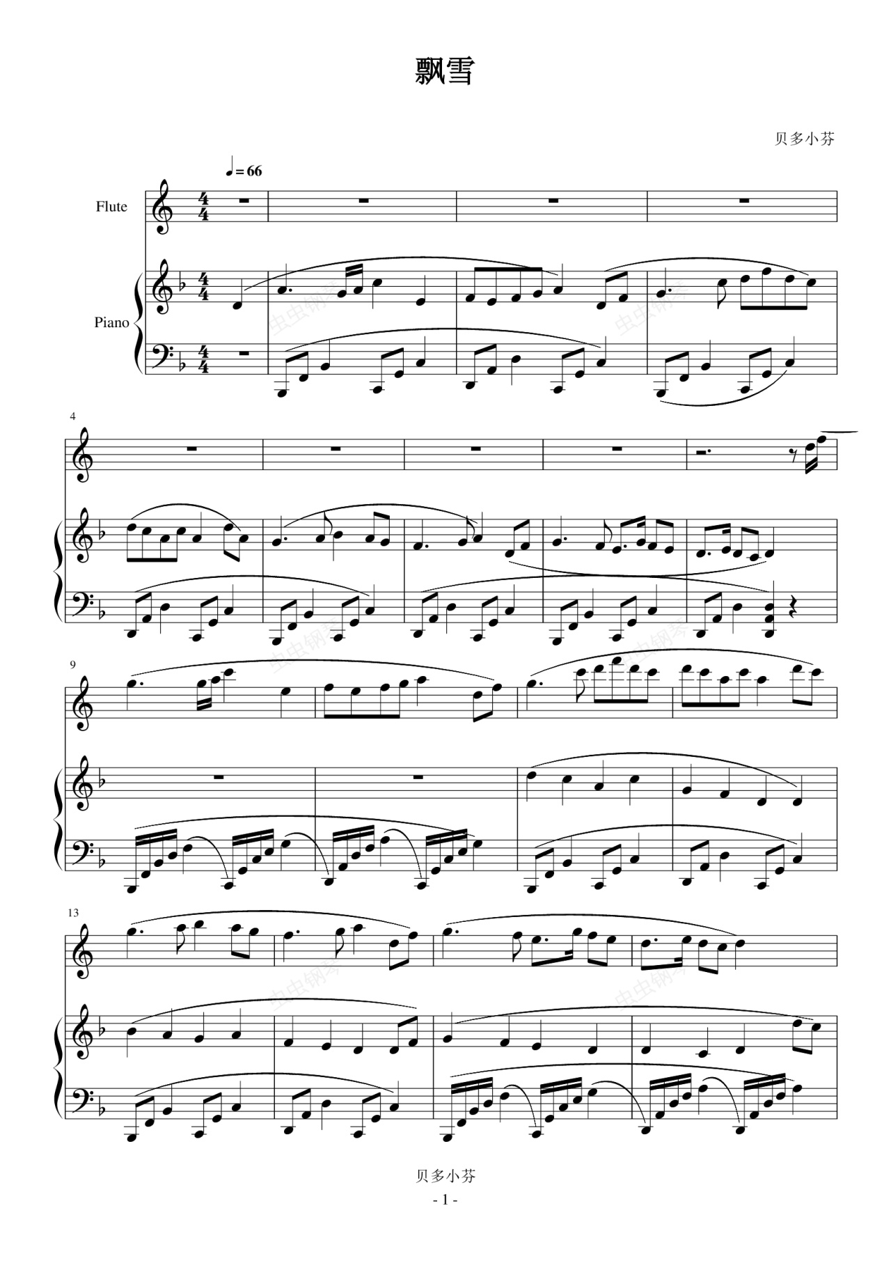 钢琴谱:飘雪