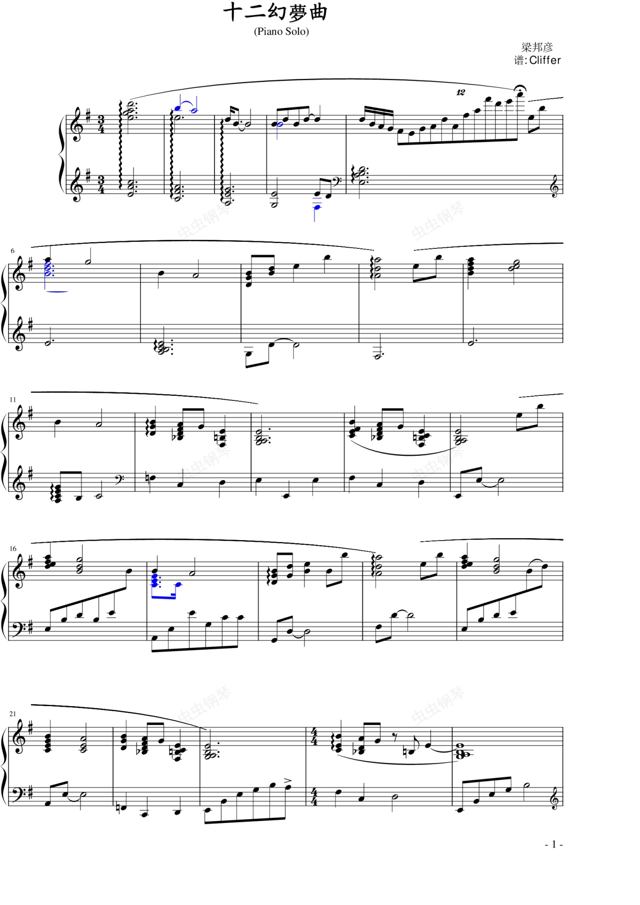 钢琴谱:十二梦幻曲