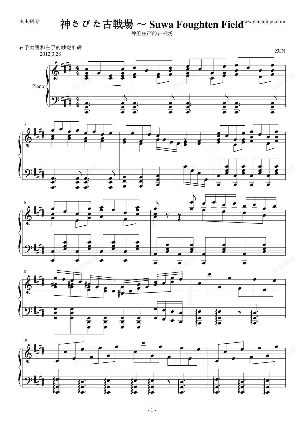 钢琴谱:【HARD】神さびた古戦場 ~ Suwa Foughten Field (八坂神奈子)