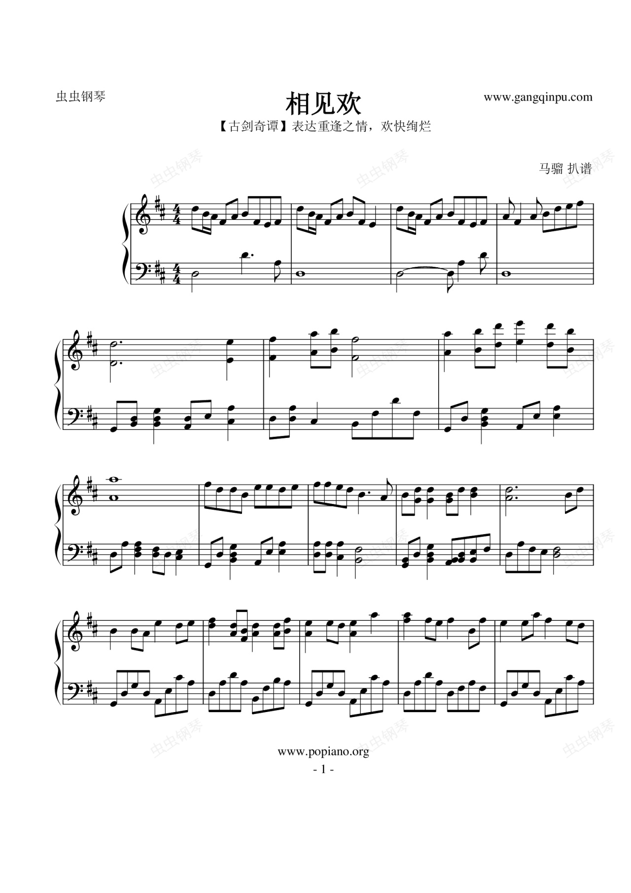 钢琴谱:【古剑奇谭】相见欢 - 表达重逢之情的乐曲