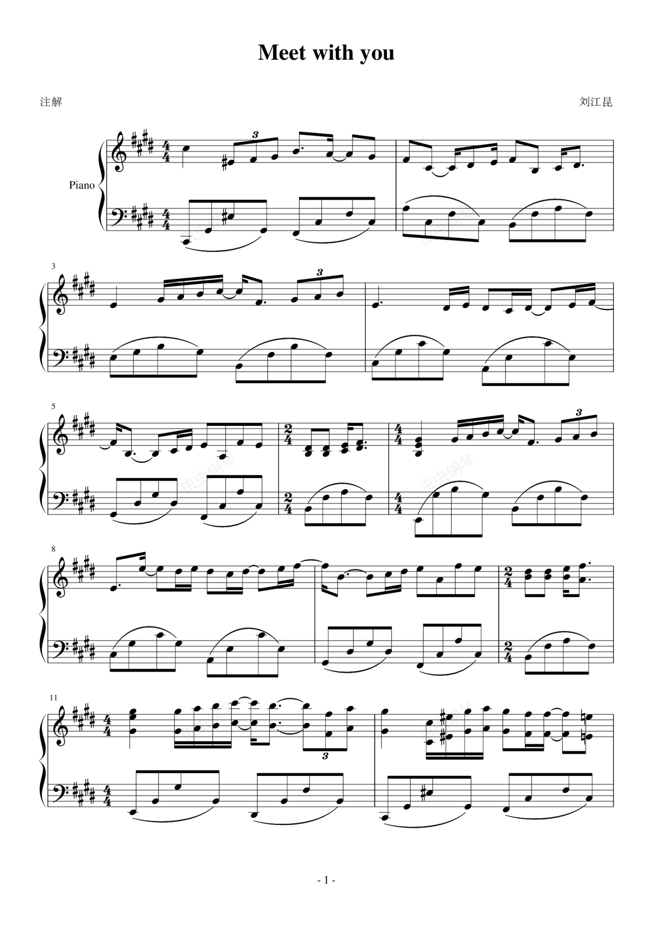 钢琴谱:Meet with you