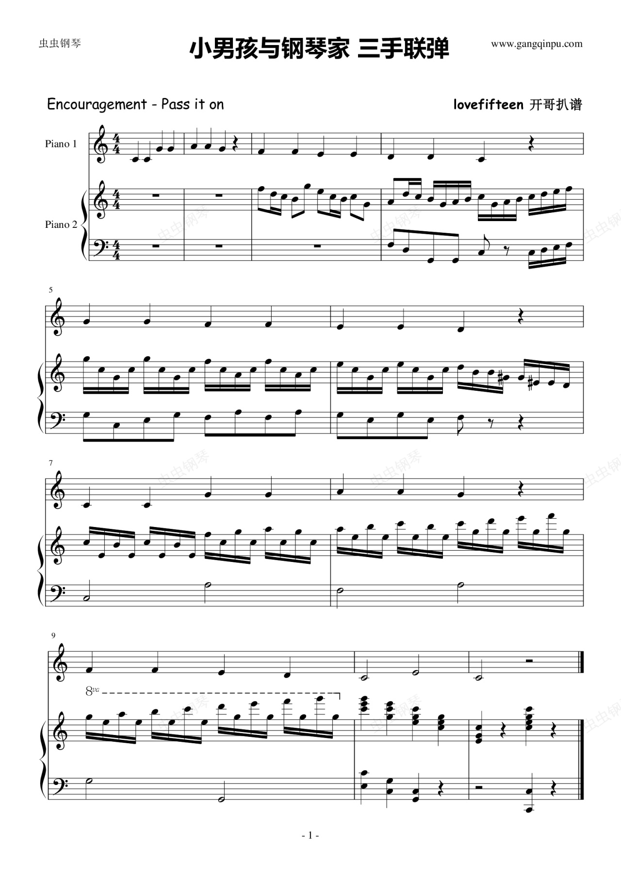 钢琴谱:【三手联弹】小男孩与钢琴家