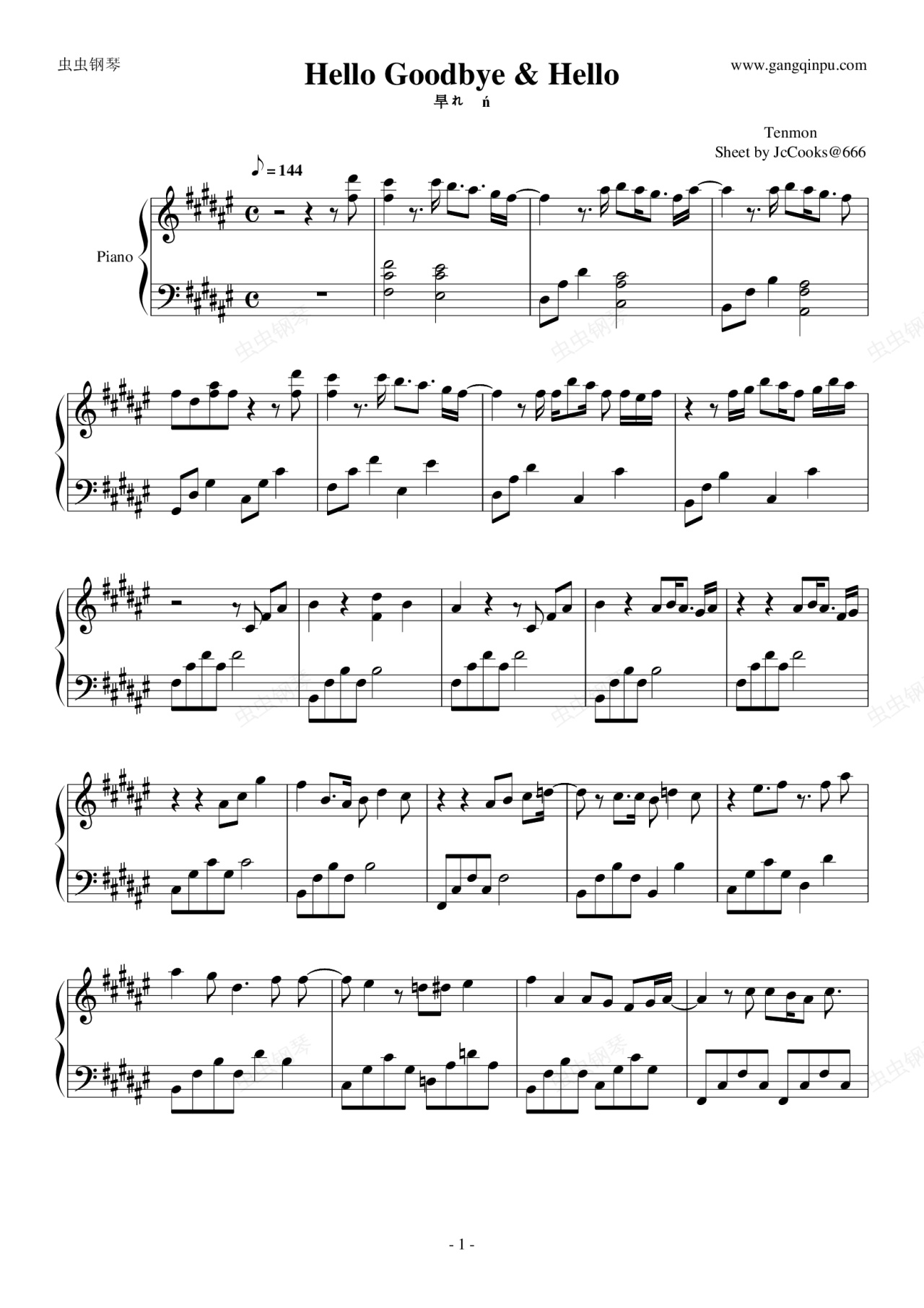 钢琴谱:追逐繁星的孩子 - Hello Goodbye & Hello 優化版