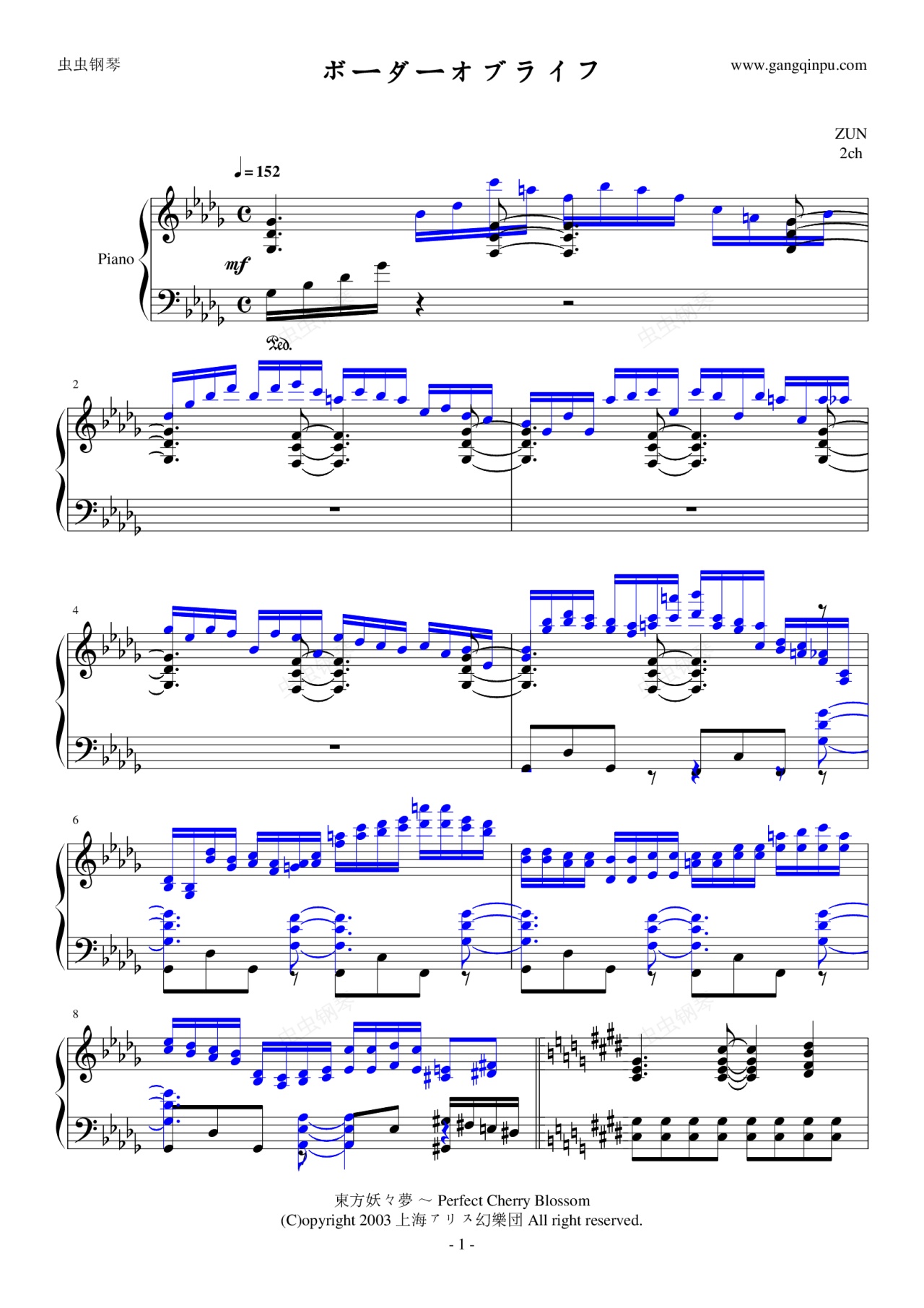 钢琴谱:[2ch/东方Project]ボーダーオブライフ