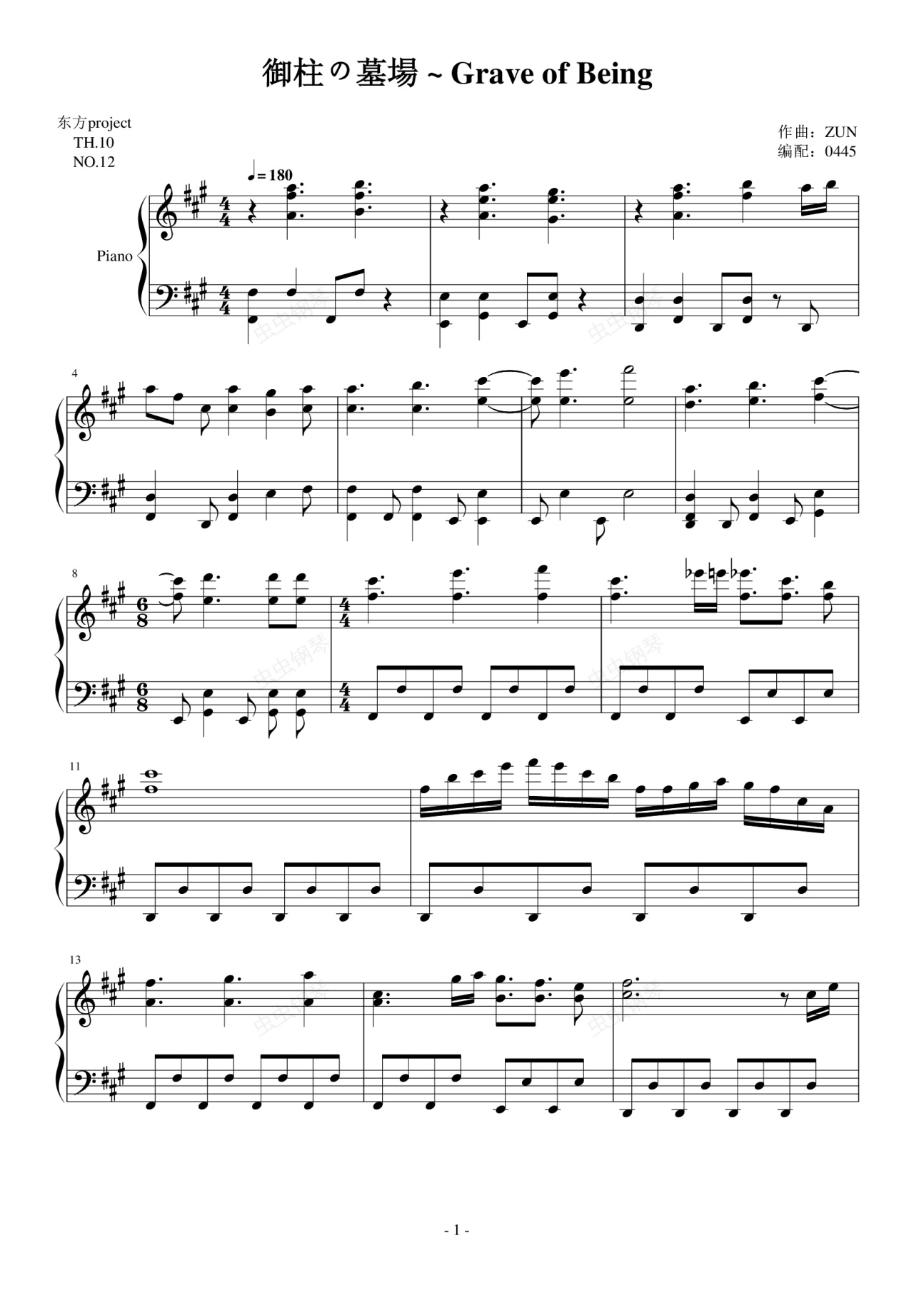 钢琴谱:【东方风神录】御柱の墓場 ~ Grave of Being