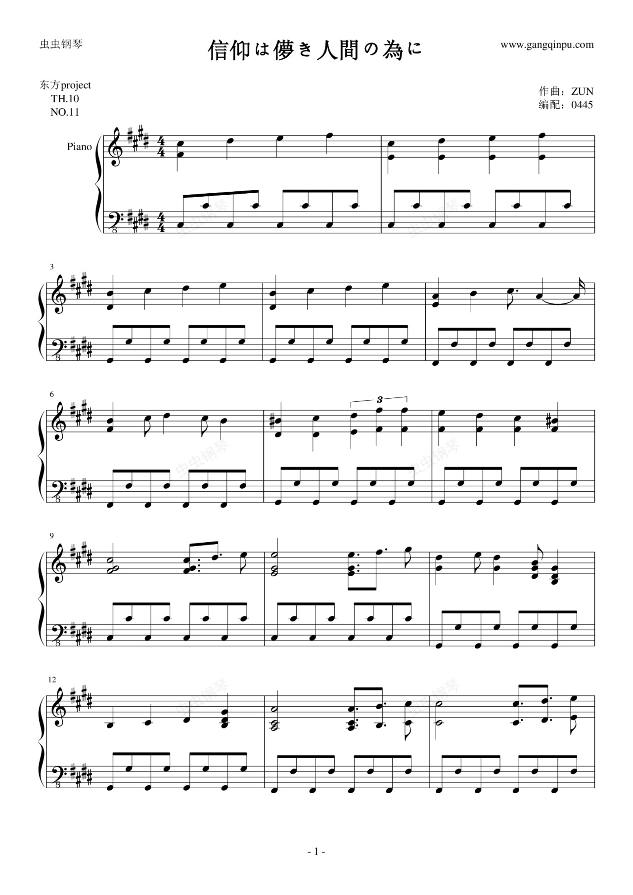 钢琴谱:【东方风神录】信仰は儚き人間の為に