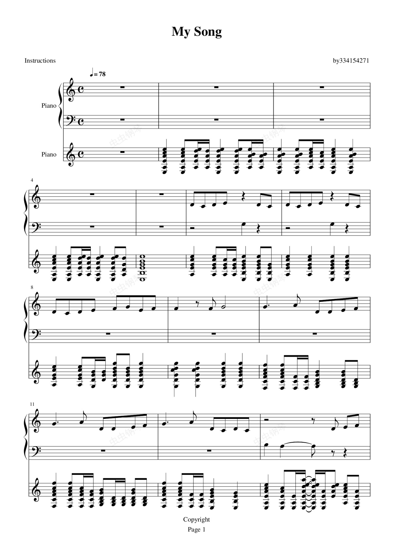 钢琴谱:My song