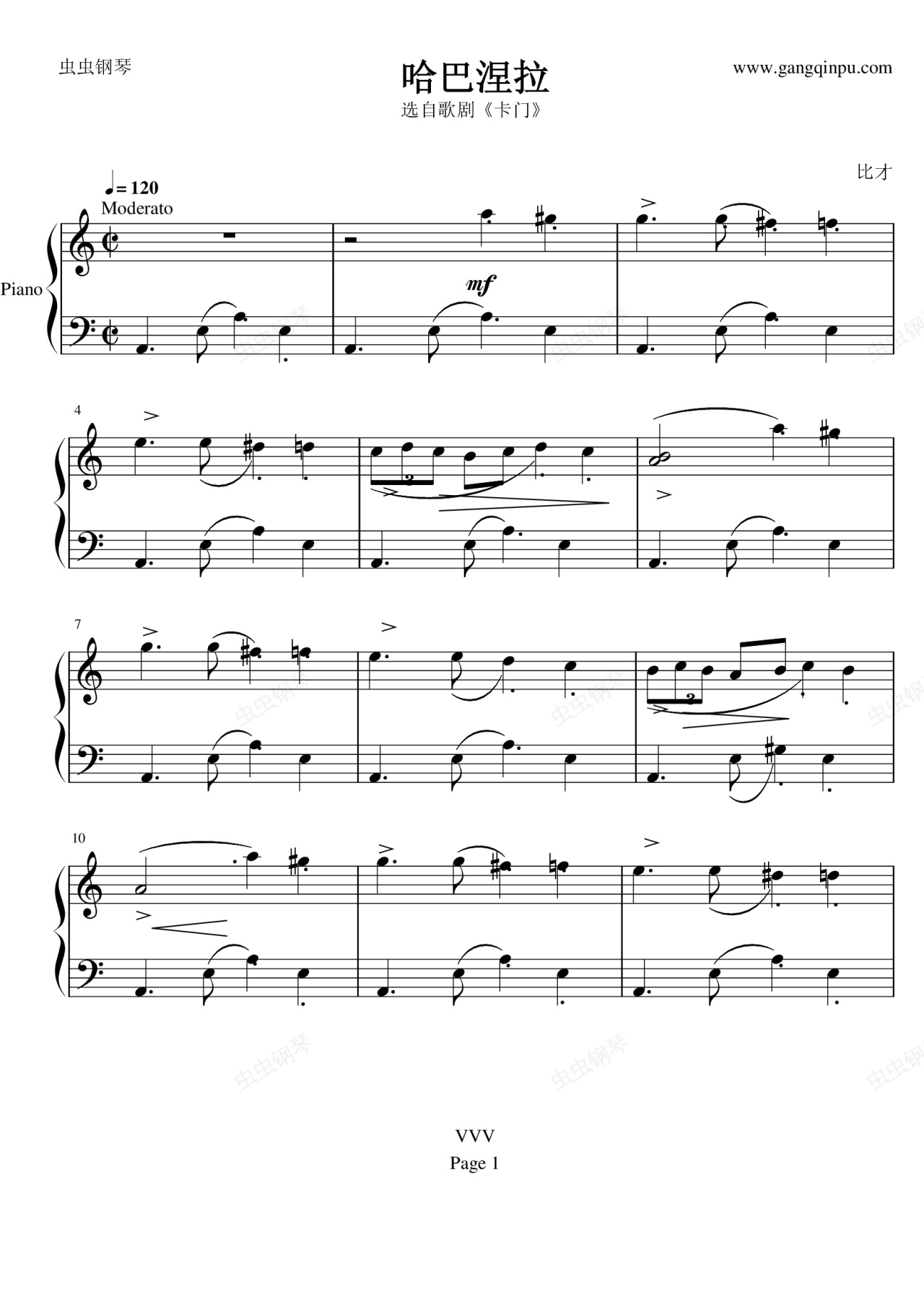 钢琴谱:卡门-哈巴涅拉