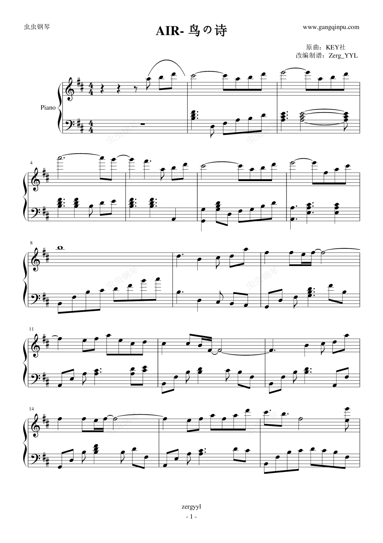 钢琴谱:《Air》OP 鸟之诗 钢琴版
