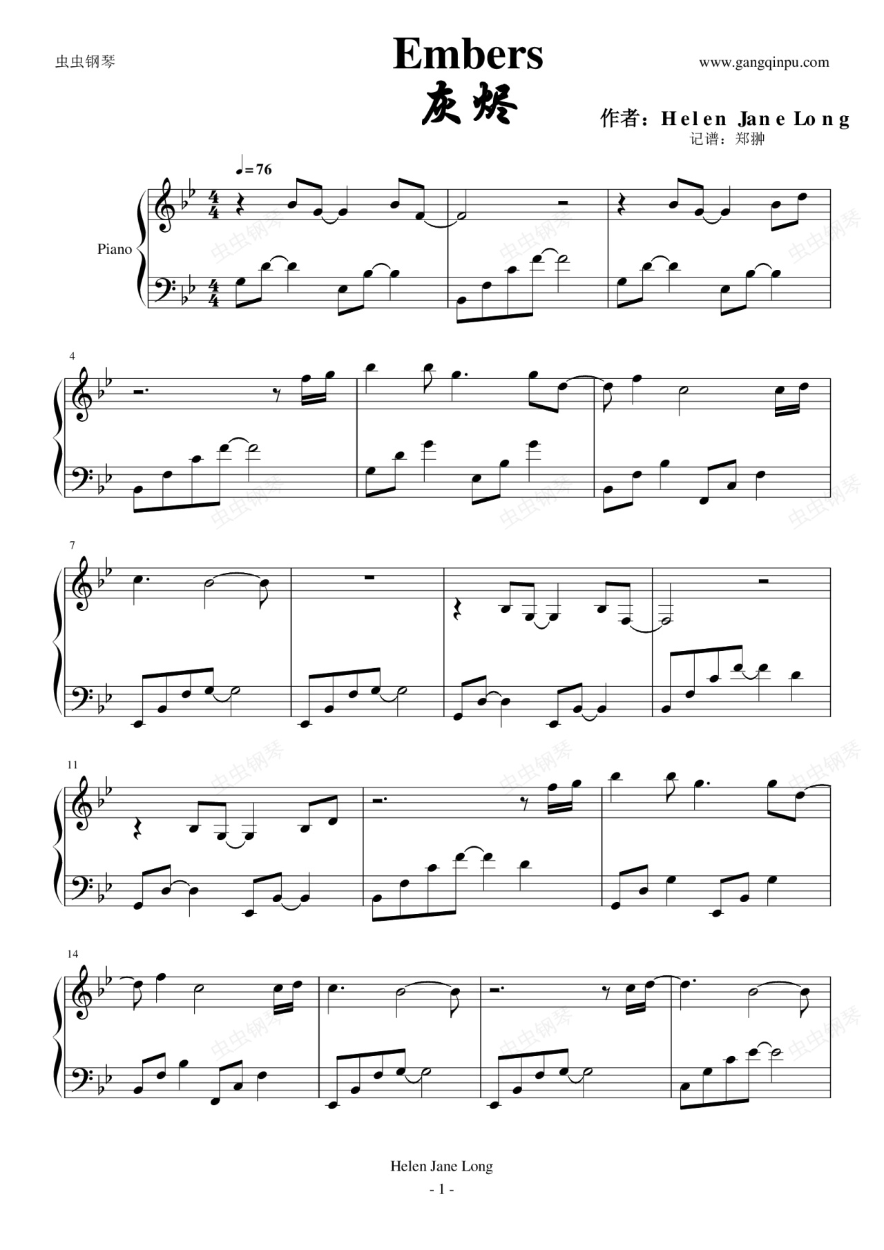 这首钢琴曲在网上已经无从查找。连MP3都木有。俺花了好大力气从国外的音乐网站上找到,但是老外的版权意识很强啊,下载链接都没有提供,俺速度听完几遍然后扒带记谱。这也体现出这首钢琴曲简单到极致了,但是真的好好听!!!希望大家喜欢 !!!!!由于该钢琴曲长度有4分钟,所以很适合大家用来做视频和电台背景音乐。由于网上没有这个曲子的MP3下载,所以如果有需要的可以挂VST导出这个曲子,也可以联系我