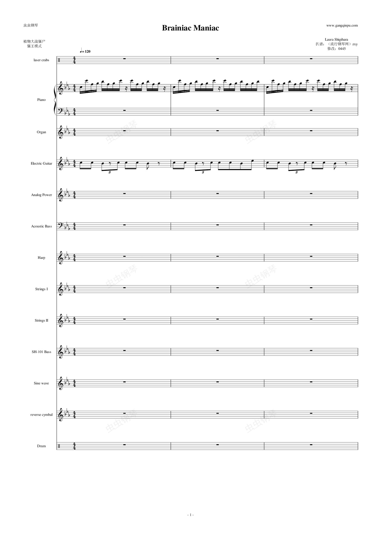钢琴谱:植物大战僵尸-僵王[Brainiac Maniac]【总谱】