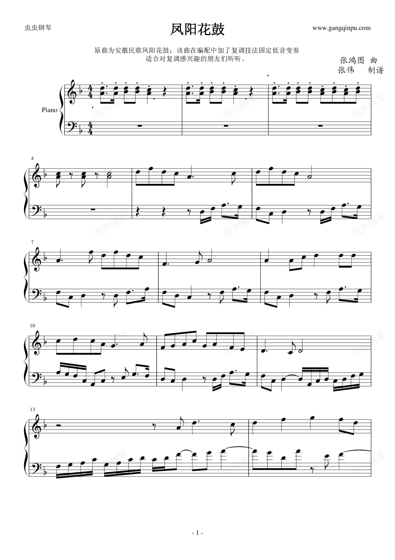 钢琴谱:凤阳花鼓(固定低音变奏)