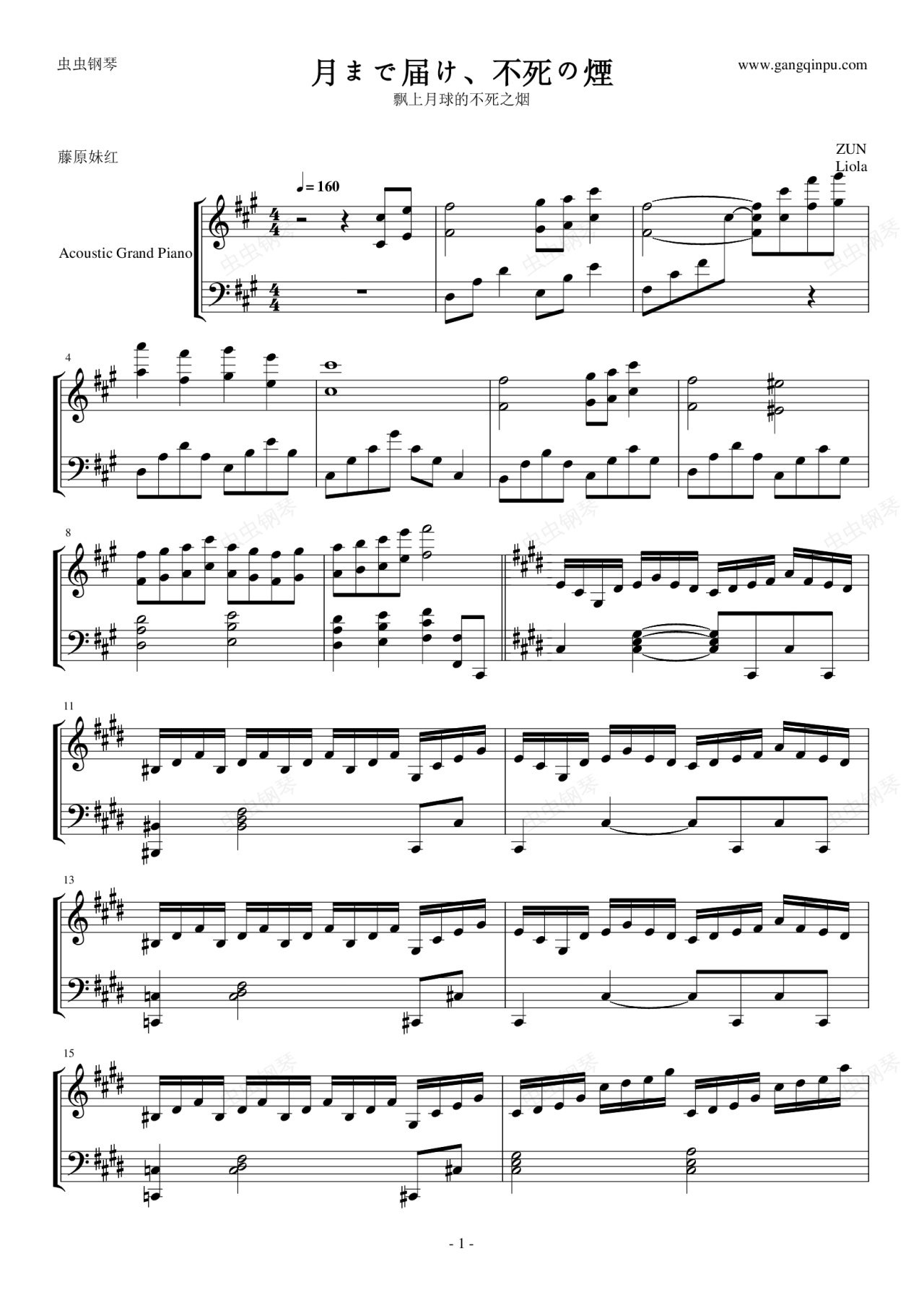 钢琴谱:【东方永夜抄】月まで届け、不死の煙