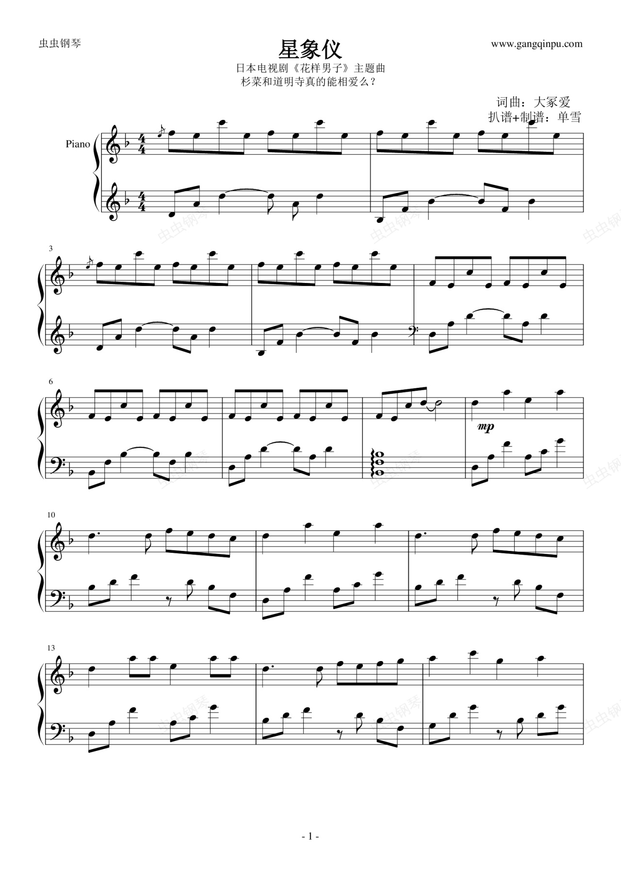 钢琴谱:星象仪
