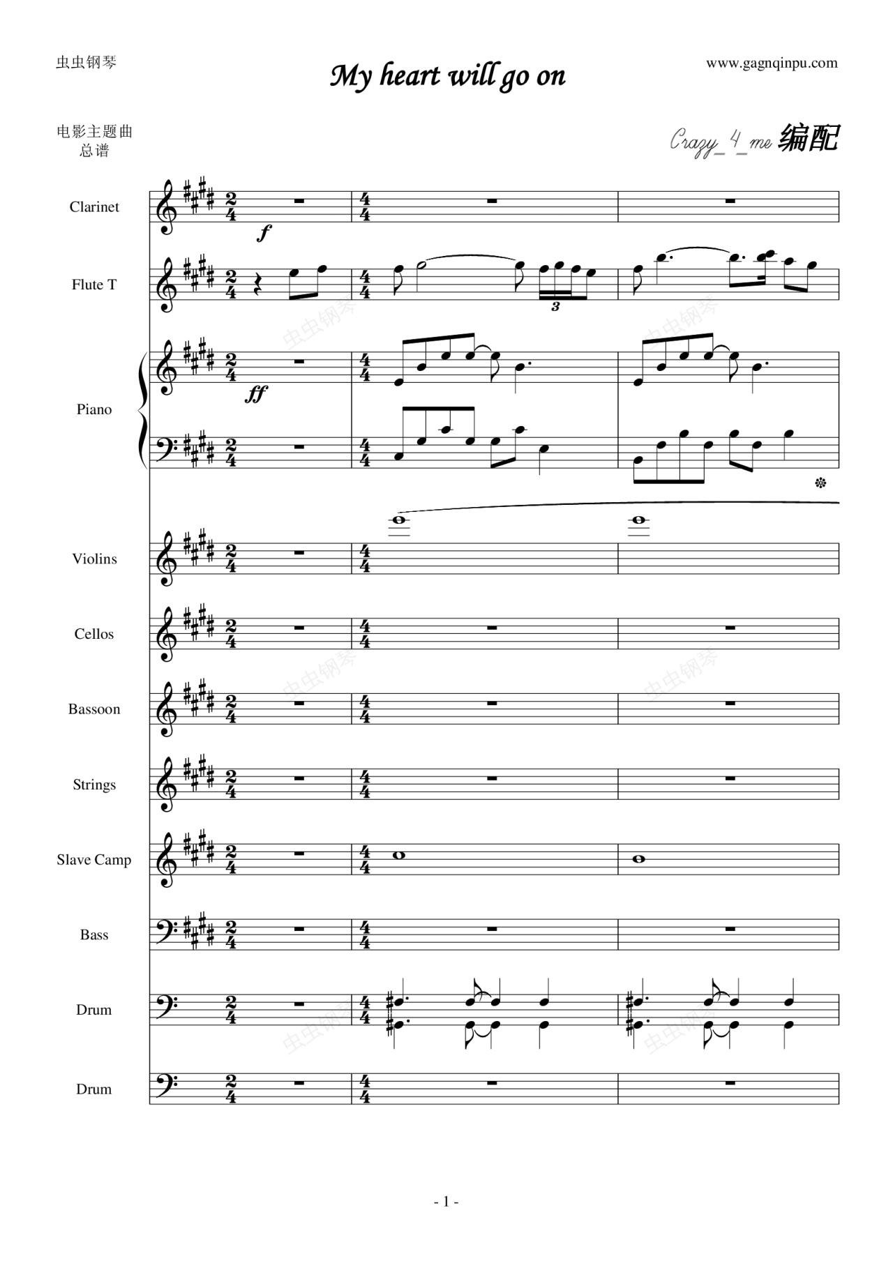 钢琴谱:My Heart Will Go On