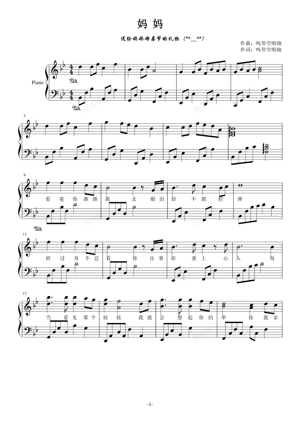 电脑抽了,歌词乱码,不知道谱子上的歌词有没有写对,再发一遍吧~