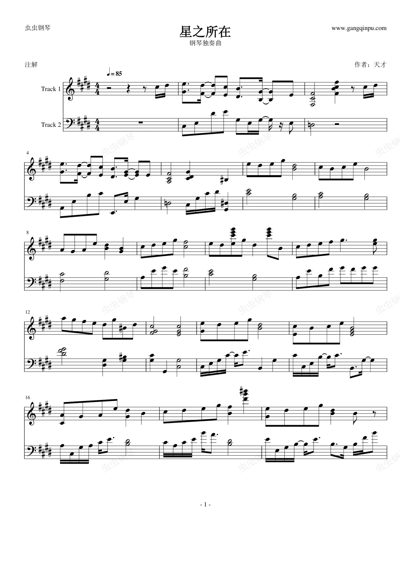 钢琴谱:星之所在