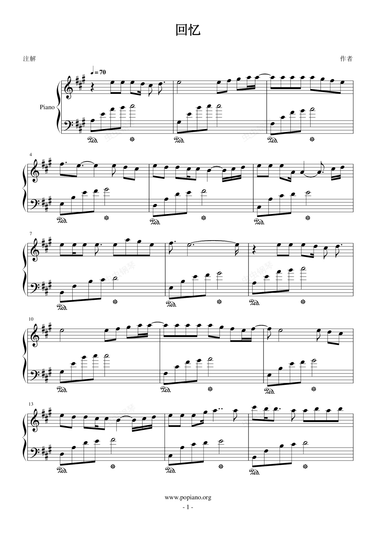 钢琴谱:回忆