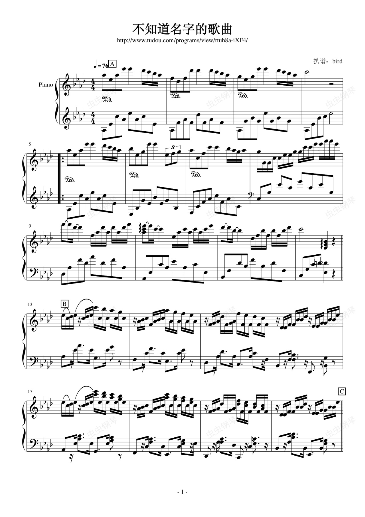 钢琴谱:一首不知道名字的歌